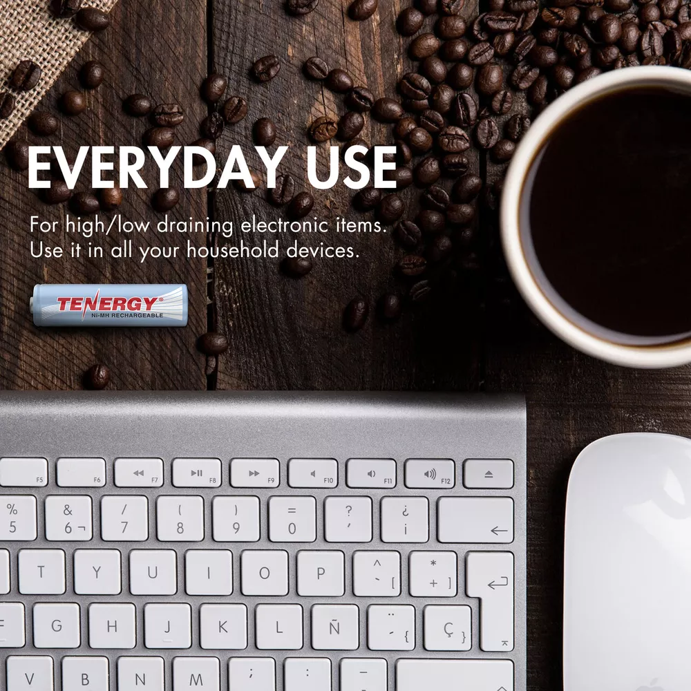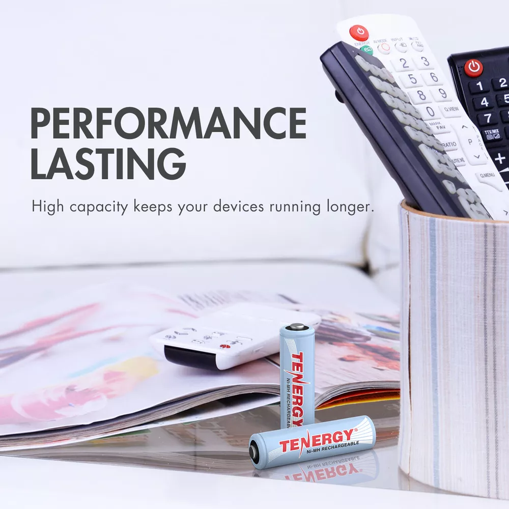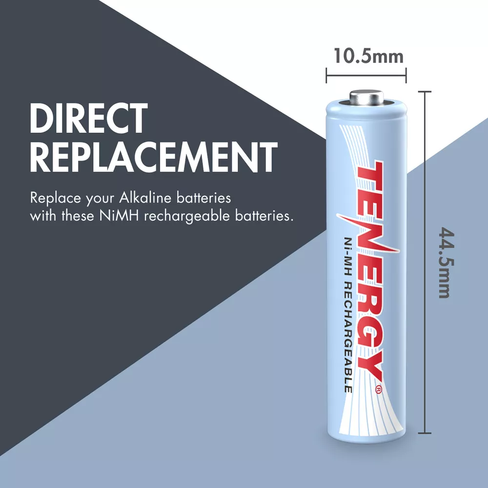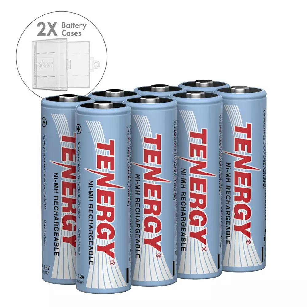 WELCOME TO THE OFFICIAL TENERGY EBAY STORE BATTERIES Standard Rechargeable Batteries AA AAA C D 9V Combos/Kits ALL NICD (AA, C, D, & SUB C) Standard Lithium Rechargeables 18650/14500 CR123A (164340) 9V SIZE Standard LiFe Batteries SLA (Sealed Lead Acid) Non-Rechargeable / Primary Akaline (AA, AAA, C, D, 9V) Lithium CR123A, CR2, 1/2 AA Button Cells Tech / Single Cells (ALL) NIMH | Sub C, A/AF, F, more NICD | Sub C, AA,C, more Li-Ion Single Cells Li-PO Single Cells LiFe Single Cells Hobby Batteries Airsoft RC Cars Drones, Planes, Heli's For Products Power Tools Roomba Batteries Solar Garden Lights BATTERY PACKS Li-Ion Packs NiMH Packs Airsoft RC Cars Drones, Planes, Heli's CHARGERS For Standard Batteries For 18650 & RCR123A For Battery Packs NiMH/NiCD Packs Li-Ion/LiPO Packs LiFe Packs TOYS Quadcopters/Drones STEM HOME/ELECTRONICS LED Lighting Bluetooth Mobile Accessories Combo: Tenergy AA 2500mAh / AAA 1000mAh NiMH Rechargeable Batteries Cells Ni-MH Lot REPLACE STANDARD BATTERIES - These NiMH rechargeable batteries measure 50.5mm (length) x 14.5mm (diameter) for AA and 44.5mm (length) x 10.5mm(diameter) for AAA. MONEY SAVING & ECO FRIENDLY - Tenergy NiMH batteries can be recharged up to 1000 times. You are also diminishing the carbon footprint by limiting the waste caused by disposable batteries. Switch over. Save. Reuse. Recharge with Tenergy. EVERYDAY USE - Our ideal rechargeable high capacity replacement AA/AAA cell is ideal for high/low draining electronic items. Use it in all your household everyday devices such as LED lights, flashlights, solar lights, night lights, calculators, remotes, controllers, cordless phones, RC toys, headlights, garden lights, headsets, alarm-clocks and many more. PERFORMANCE LASTING - At a battery capacity of 2500mAh for AA and 1000mAh for AAA, Tenergy rechargeable 1.2V NiMH battery keeps your devices running longer. NO MEMORY EFFECT - With no memory effect on our rechargeable AA/AAA NiMH batteries, charge your batteries anytime. Even when they are close to full or partially drained you won't have to worry about long term memory effects and will still get the full capacity each use. How to choose correct size and quantity: Step 1: Choose battery size. Step 2: Select quantity: 4, 8, 12, 24, 60 or 120-pack Product Description Features And Benefits: REPLACE STANDARD BATTERIES - These NiMH rechargeable batteries measure 50.5mm (length) x 14.5mm (diameter) for AA and 44.5mm (length) x 10.5mm(diameter) for AAA. MONEY SAVING & ECO FRIENDLY - Tenergy NiMH batteries can be recharged up to 1000 times. You are also diminishing the carbon footprint by limiting the waste caused by disposable batteries. Switch over. Save. Reuse. Recharge with Tenergy. EVERYDAY USE - Our ideal rechargeable high capacity replacement AA/AAA cell is ideal for high/low draining electronic items. Use it in all your household everyday devices such as LED lights, flashlights, solar lights, night lights, calculators, remotes, controllers, cordless phones, RC toys, headlights, garden lights, headsets, alarm-clocks and many more. PERFORMANCE LASTING - At a battery capacity of 2500mAh for AA and 1000mAh for AAA, Tenergy rechargeable 1.2V NiMH battery keeps your devices running longer so that it doesn't fail you when you need it most. NO MEMORY EFFECT - With no memory effect on our rechargeable AA/AAA NiMH batteries, charge your batteries anytime. Even when they are close to full or partially drained you won't have to worry about long term memory effects and will still get the full capacity each use. Specifications Size: AA Voltage: 1.2V Weight: 26.5g Capacity: 2500mAh Dimensions: 50.5mm x 14.5mm Size: AAA Voltage: 1.2V Weight: 13g Capacity: 1000mAh Dimensions: 45.5mm x 10.5mm See Compatible Charger Recommendations: Tenergy 01474 Tenergy 01162 Tenergy 01160 Tenergy 01438 Compatible Chemistry NiMH & NiCD NiMH & NiCD NiMH & NiCD NiMH & NiCD Charging Slots 4 8 12 16 Charging Rate AA & AAA: 450mA per hour AA: 500mA per hour AAA: 250mA per hour AA: 500mA per hour AAA: 250mA per hour AA:500mA per hour AAA: 250mA per hour Display LCD LCD LCD LCD Powered By USB AC Wall Adapter Car Adapter AC Wall Adapter AC Wall Adapter Car Adapter *Note: charger recommendations above are some options from Tenergy. This battery can be used with any other branded chargers as long as it supports NiMH batteries. Extend Your NiMH Battery Life With The Following Practices Do not over-charge the battery, remove the battery from charger when you are done recharging. Heat lowers battery life, do not charge or discharge the battery when it's hot. Always let the batteries cool down to room temp before using it/charging it. Do not store the battery with low voltage, recharge after each use to avoid over-discharge. Always store the battery in a dry and cool place, never expose it to heat or direct sunlight. Recharge the battery once every 6-months, if they will be unused or stored long term.