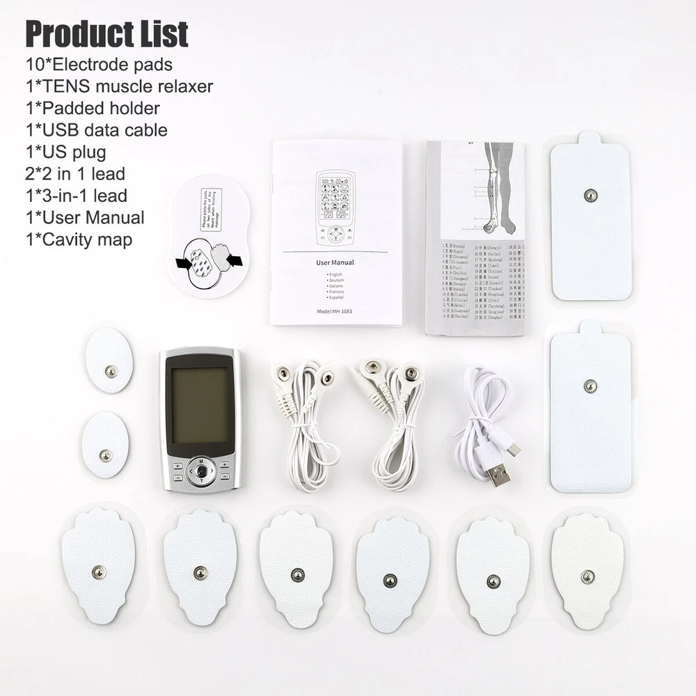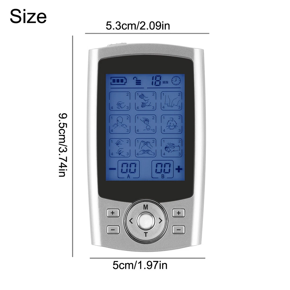 Product Description Description: -- Independent Dual Channel Tens Machine You can set separate modes and intensities for channel A and channel B. Use for back, knee, shoulder, ankles, wrist, elbow and make this the most powerful tool for your body relaxation. Enjoy with Your Family and Friends Anytime, Anywhere. -- 36 Modes & 20 Adjustable Levels This TENS unit is equipped with 36 massage modes (beat, massage therapy, scraping, back massage, kneading, acupuncture, cupping, neck and shoulder massage, Tai Chi), each group has 20 levels of intensity, allowing you to easily find one that meets your needs Settings to relieve pain (lower back, arms, joints). -- Steady Current & 20 H Continuous Use We adopt a unique physical therapy mode, that offers steady current. It generates electrical pulses moving through the skin to nearby nerves to block the body’s pain signal to your brain. What's more, the built-in powerful rechargeable lithium battery can be used continuously for 20 hours. -- Adjustable Timer The timer allows you to set a time of between 10-60 minutes, with the default set to 20 minutes. -- Enjoy the Portable Design This TENS unit device comes with a Box, allowing you to carry it anywhere when necessary. Direction: Connect electrode cables to the pads and plug the cable to each channel(A&B). It can work using only one channel if desired. Remove the transparent film attached to the electrodes and stick them on the desired area of your body. Turn on the product. Use the "M" key to select your desired massage mode (among 36 types) in channel A Use the "T" key to select your desired massage duration Use the "+" or "-" to select your desired intensity (independent of the channel) Use the round button to lock/channel the mode. Turn off the TENS unit after each session and remove cables and restick the used pads in the pad holder Specification: Power Supply: Rechargeable Color: Silver Applicable Parts: legs, buttocks, neck, head, waist, back, feet Massage Techniques: massage, kneading, shiatsu, percussion, beat Package Includes: 10 * Electrode Pads 1 * TENS Muscle Relaxer 1 * Pad Holder 1 * USB Data Cable 1 * US Plug 2 * 2 in 1 Lead Wire 1 * 3 in 1 Lead Wire 1 * User Manual 1 * Acupuncture Point Chart Note: Please read the user manual carefully before use. Do not apply the massage pads near the heart, sensitive parts of the brain, over scarred areas, on the throat or over the mouth. Avoid touching the pads when the device is on. Keep out of the reach of children. Payment Shipping Terms Returns Contact Us We accept PayPal only. If buyer want to delay the payment because of financial problem, please contact me by the ebay message within 3 days Payment via PayPal (PayPal accepts all major credits/debit cards and eCheque) ECheque payment will tak e 3-10 days to get clear, thus DELAYing the shipment. Handling time: 1 business day (Orders are not processed on weekends & holidays) Tracking information will be sent once item is shipped. Local pick-up is unavailable at the moment. For international shipping and shipping to Guam, Hawaii and Alaska, Please contact us before placing the order. Item is shipped to ebay address. Leaving correct address can minimize delay. For any issues with Defects, Return, Item Exchange request, please contact us first and send us a message first before opening any type of case or request. We devote ourselves making EVERY CUSTOMER in 100% Satisfactory and resolve any problem. We highly value and appreciate your business. Thank you. No returns will be accepted without an RMA number. Please contact us for the RMA number. Return is acceptable within 30 days of delivery. Return for replacement or money back is optional. Returned items must be in the brand new, unaltered and resalable condition. Seller is not responsible for any labor cost, expense in a dealer store, or damage due to wrong installation. Return is accepted within 14 days after the buyer's receiving the item. (Excluding contrived damagement or misusage).100% money-back Guaranteed! All product will be tested in 100% before delivery.If the item is defected by the processing of postage,Buyer has up to 14 days from date of receipt for exchange of a new one.All shipping charges for returned products are to be paid by the buyer,Please contact us for the return address All messages will be answered within 24 office hours. Please contact us either by clicking "contact seller" in the "purchase history" section or simply click "ask a question" at the bottom of this page. If you are unsatisfied with our item or service, please contact us before leaving any feedback. We are committed to resolve all issues in a friendly and satisfactory manner. We always reply to messages within 2 business days (off-duty at weekend). If you do not get a response from us, then please check your junk or spam mailbox. Payment We accept PayPal only. If buyer want to delay the payment because of financial problem, please contact me by the ebay message within 3 days Payment via PayPal (PayPal accepts all major credits/debit cards and eCheque) ECheque payment will tak e 3-10 days to get clear, thus DELAYing the shipment. Shipping Handling time: 1 business day (Orders are not processed on weekends & holidays) Tracking information will be sent once item is shipped. Local pick-up is unavailable at the moment. For international shipping and shipping to Guam, Hawaii and Alaska, Please contact us before placing the order. Item is shipped to ebay address. Leaving correct address can minimize delay. Terms For any issues with Defects, Return, Item Exchange request, please contact us first and send us a message first before opening any type of case or request. We devote ourselves making EVERY CUSTOMER in 100% Satisfactory and resolve any problem. We highly value and appreciate your business. Thank you. No returns will be accepted without an RMA number. Please contact us for the RMA number. Return is acceptable within 30 days of delivery. Return for repla