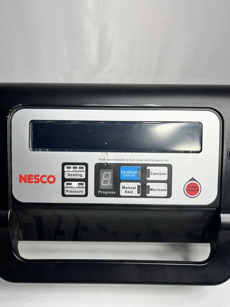 This NESCO VS-12 Food Vacuum Sealer is a versatile kitchen appliance that will help you prepare and store food with ease. With a power source of 120V and a voltage of 130W, this electric vacuum sealer comes in a sleek silver color and is made of durable plastic material. It is perfect for multifunctional food compatibility and features automatic sealing, making it a great addition to any kitchen. This model does not come with a manual or bag, but it has been tested and is guaranteed to work efficiently. Get your hands on this reliable vacuum sealer and enjoy hassle-free food preparation and storage. Wear and imperfections Needs cleaned