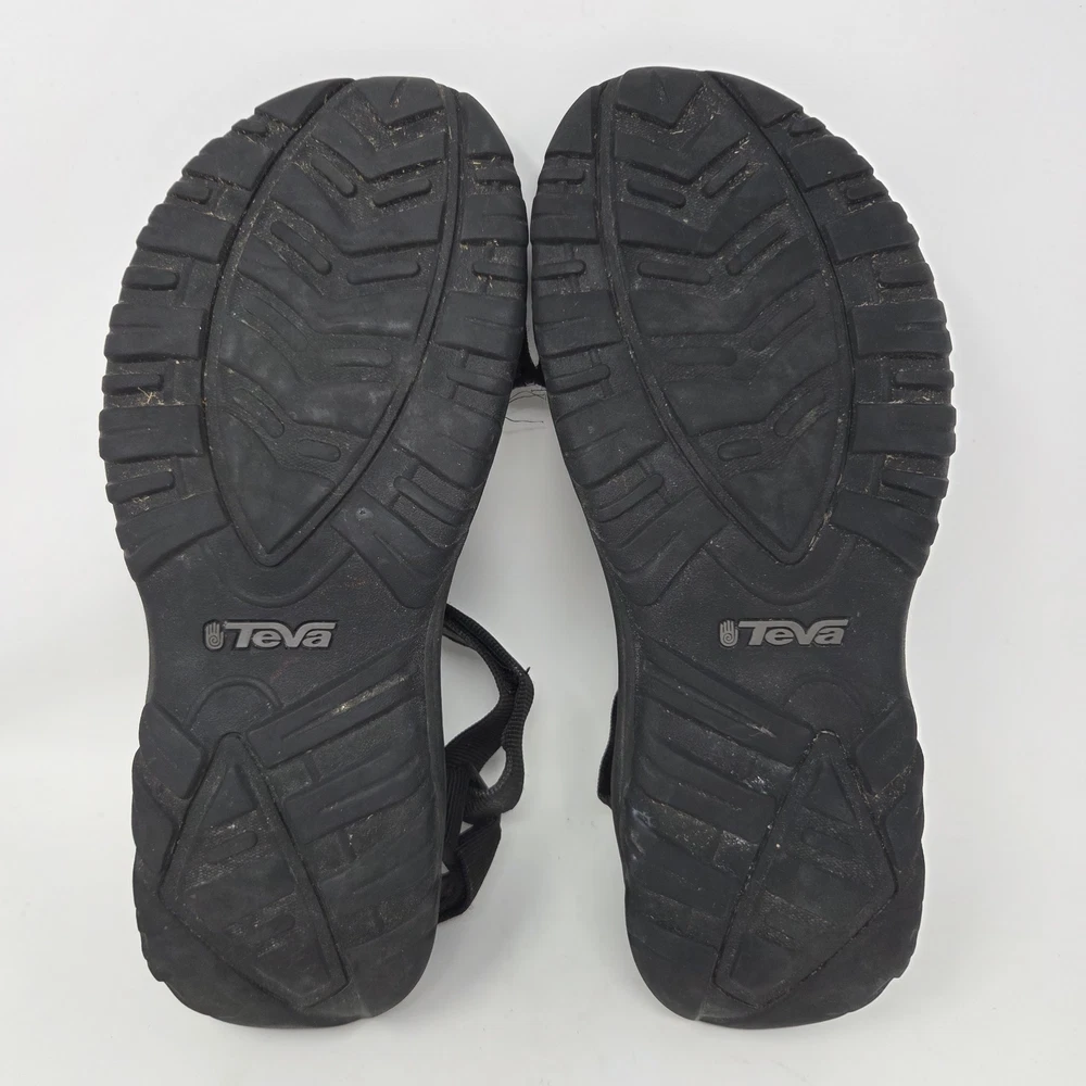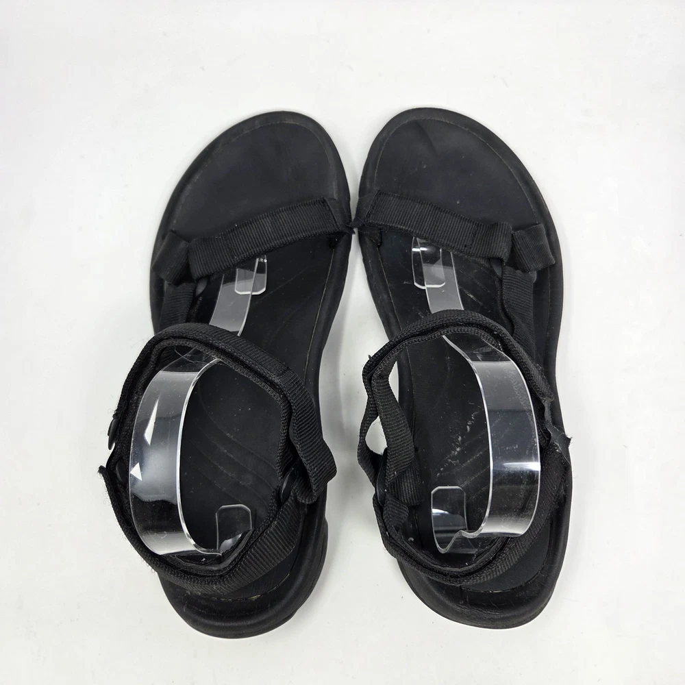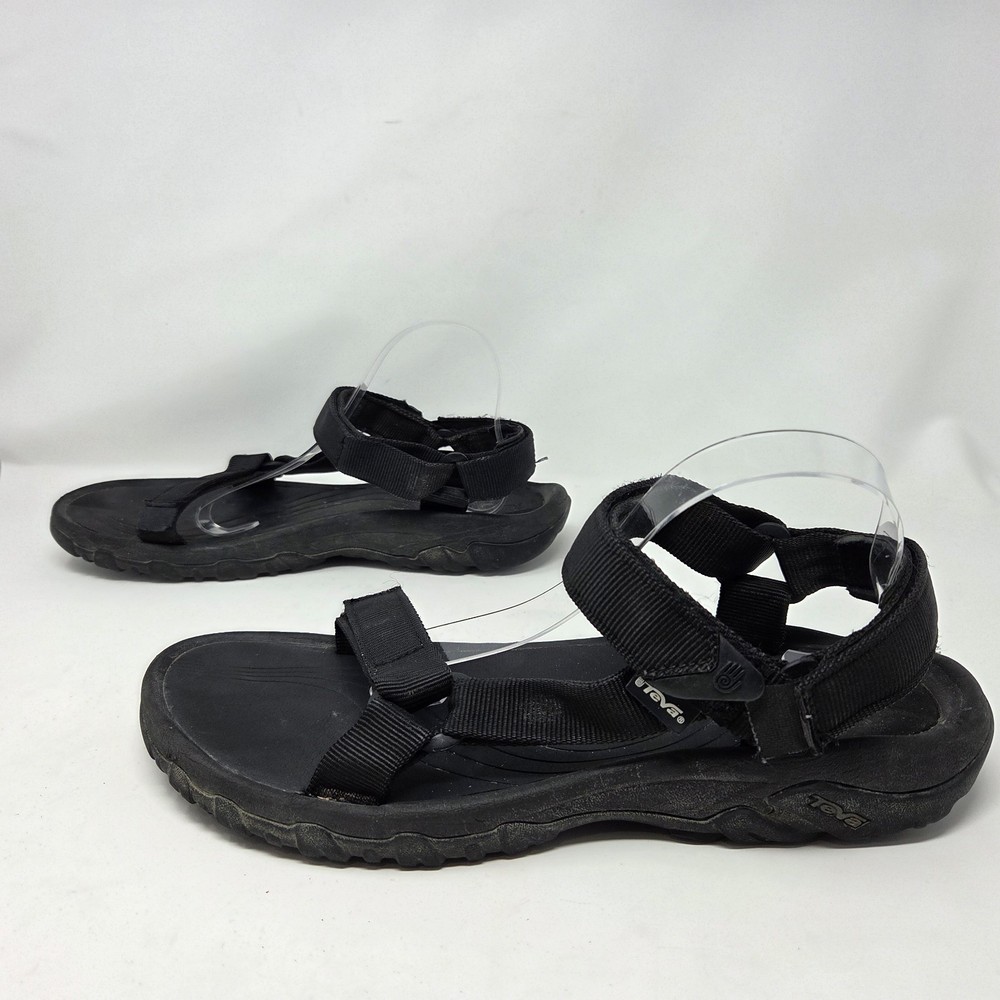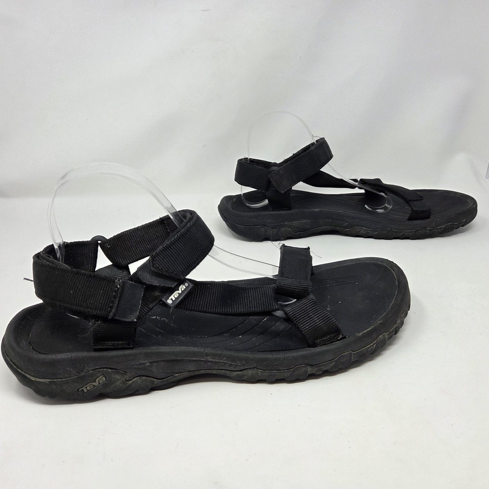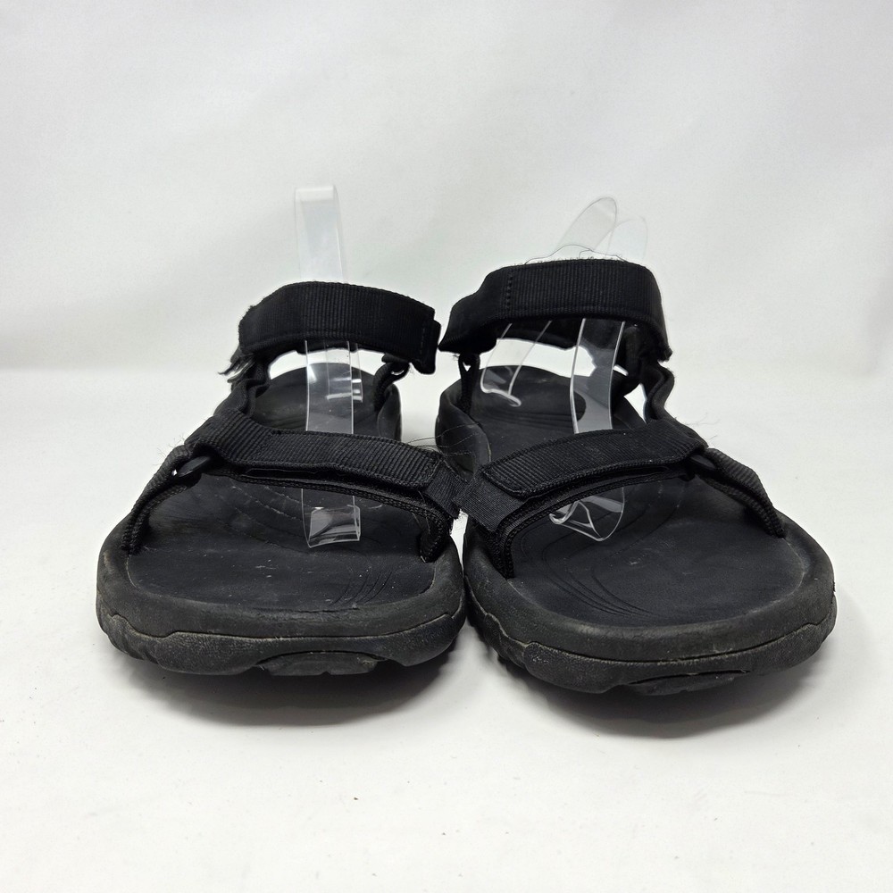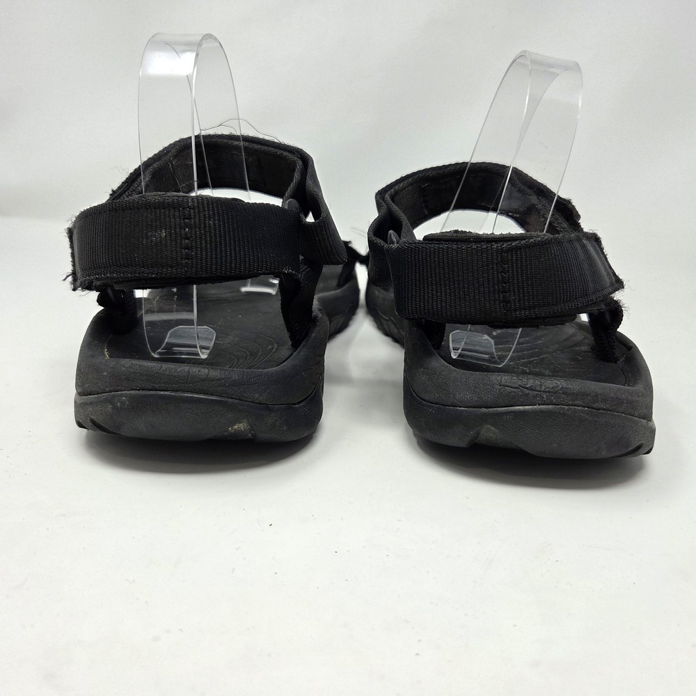 These Teva Hurricane XLT2 sandals are designed for outdoor activities with a waterproof black nylon upper and rubber outsole. They feature adjustable straps, ankle strap, and comfortable foam insole. The size 12 men's sandals have a standard shoe width and are suitable for summer, fall, and spring seasons. The design is sporty and suitable for nature-inspired and outdoor-themed occasions. These shoes are in excellent “pre owned” condition. For more information, please see photos or feel free to contact me with any questions. All orders are shipped within 24 hours of payment received.