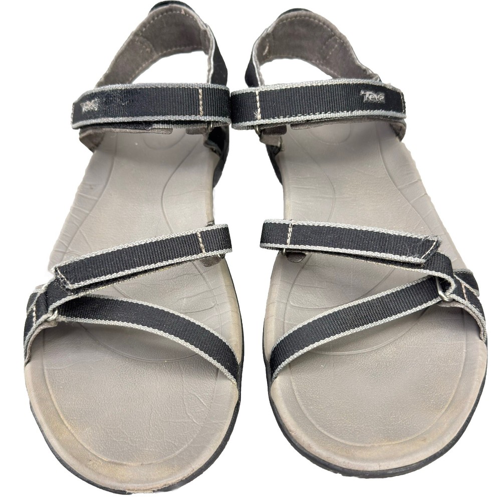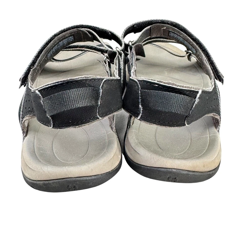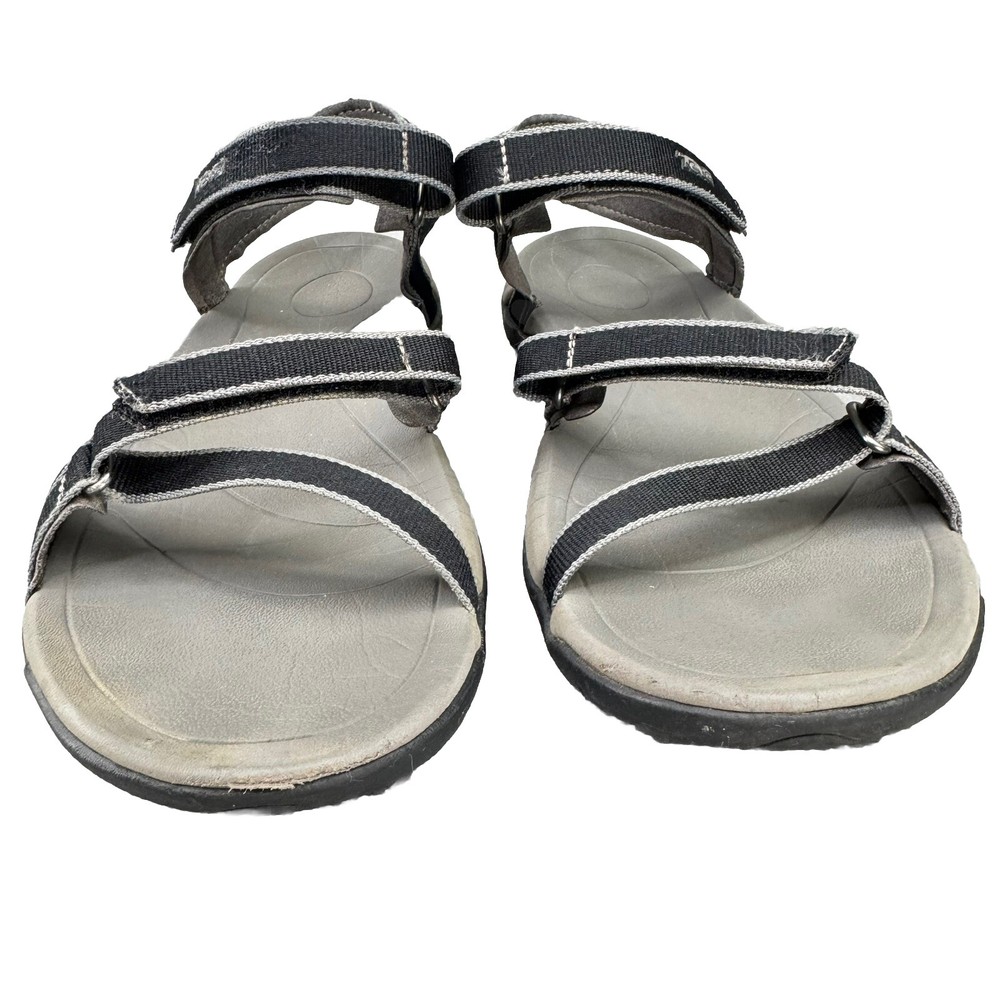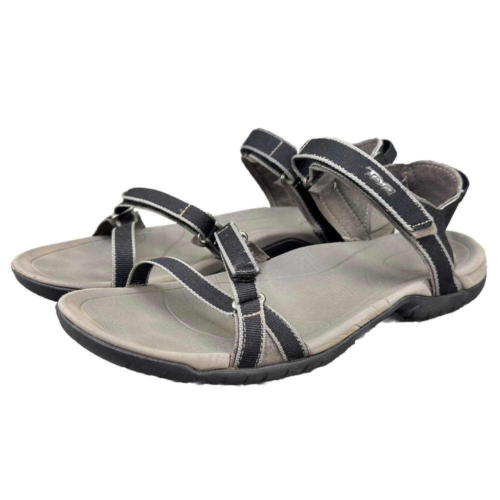 The Teva Verra Sandals in Gray and Black are designed for women in size 11. These sporty sandals feature a strappy style with a striped pattern and hook & loop closure both for ankle and forefoot for a secure fit. Made with leather uppers and an ankle strap, they are suitable for activities like hiking and other casual wear. The flat heel and low heel height make them comfortable for all-day wear, while the Teva Verra model ensures quality and style for outdoor adventures. These sandals offer a mix of practicality and fashion for the active woman. Great pre-owned condition. ⭐Smoke and pet-free ⭐Examine photos carefully as they are part of the description. ⭐If you need more measurements or images, do not hesitate to contact us. ⭐Ships quickly - same or next business day! Returns policy: If you need more measurements or images, do not hesitate to contact us. If you receive your item and it doesn't fit, or is not what you wanted, all we ask is that you return it within 30 days, in the condition we sent it to you in. Please be aware that buyer pays for return shipping. If the item is new with tags, please do not wash or remove the tags. Store tags must be attached for a return. If they are not attached when returned, this will result in less than a full refund. Thank You! 😊
