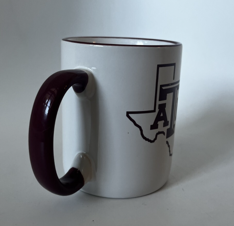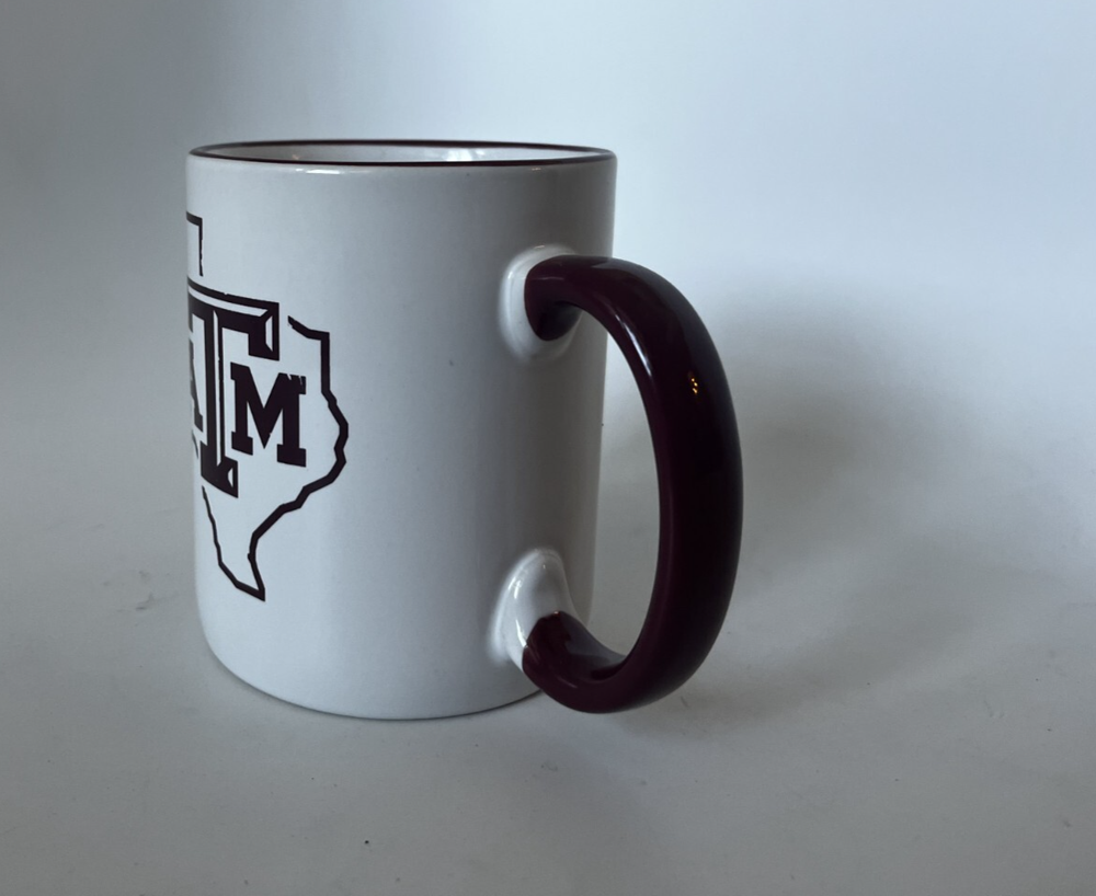 Show your love for the Texas A&M Aggies with this stylish and functional 11 oz ceramic coffee cup. Perfect for all occasions, this cup is designed with the university's colors and logo, making it a must-have for any fan. The cup is made of high-quality materials and is perfect for both hot and cold beverages. It is a great gift for any alumni or student who loves their team. The cup is a licensed reproduction and is made in China. This traditional style mug is perfect for tea, coffee, or hot chocolate. Get yours now and enjoy your favorite beverage while showing your support for the Aggies!