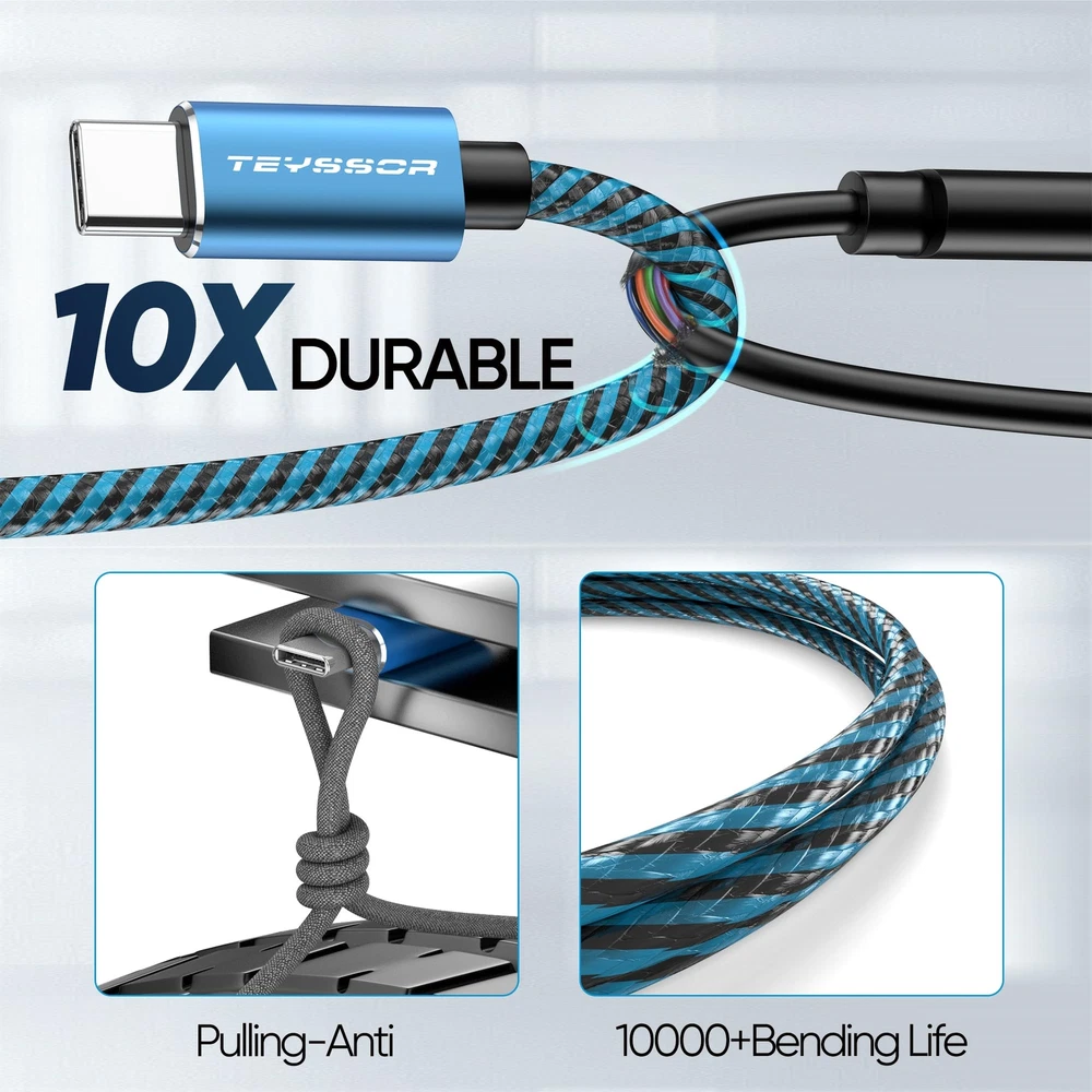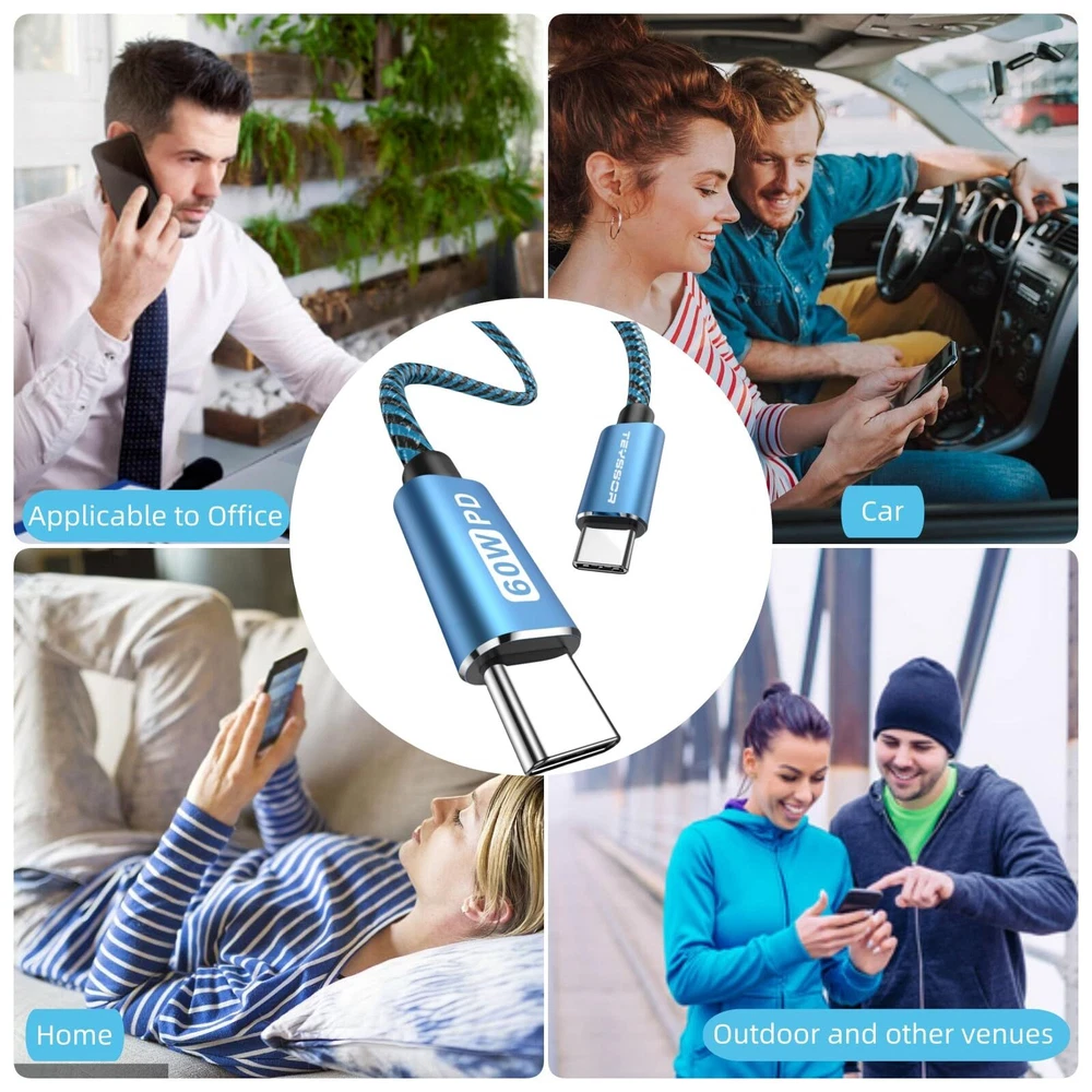 Teyssor USB C to USB C Cable, USB C Charger Cable 10FT 5-Pack 60W, USBC to USBC Fast Charging Cable for Phone 15/15 Pro/15 Pro Max, Type C Charger Cable for Samsung S23/S23+, MacBook, Pad Pro/Air High Speed Charging and Sync: Our USB C Cable supports high-speed charging up to 60W when used with a compatible charger, and data transfer speed up to 480Mbps. Durable and Reliable: Nylon braided charging cable manufactured with high quality TPE material for durability and reliability, able to withstand long-term use and over 10,000+ bends. Superior Design: Type C aluminum cover for safe and reliable, integral Seamless stretch process, high pressure resistance. Aluminum alloy shell by micro-arc oxidation process makes the shell surface harder and more wearable. What You Get: Package includes 5-pack*10 Ft Teyssor USB C to USB C Cables. If you have any other questions, please feel free to contact us, we will resolve your issue within 24 hours. Wide Compatibility: Compatible with all C Port devices including mobile phones, tablets, laptops. Such as Samsung Galaxy S23/S22/S21/Google Pixel 7 Pro/6/Pad Pro/Macbook Pro/Macbook Air etc. High Speed Charging and Sync: Our USB C Cable supports high-speed charging up to 60W when used with a compatible charger, and data transfer speed up to 480Mbps. Durable and Reliable: Nylon braided charging cable manufactured with high quality TPE material for durability and reliability, able to withstand long-term use and over 10,000+ bends. Superior Design: Type C aluminum cover for safe and reliable, integral Seamless stretch process, high pressure resistance. Aluminum alloy shell by micro-arc oxidation process makes the shell surface harder and more wearable. What You Get: Package includes 5-pack*10 Ft Teyssor USB C to USB C Cables. If you have any other questions, please feel free to contact us, we will resolve your issue within 24 hours. Wide Compatibility: Compatible with all C Port devices including mobile phones, tablets, laptops. Such as Samsung Galaxy S23/S22/S21/Google Pixel 7 Pro/6/Pad Pro/Macbook Pro/Macbook Air etc. Shipping from the USA All of our products are shipped from the USA, ensuring quick delivery to your destination. Payment We offer the following payment methods: PayPal, credit card, bank transfer, and eBay's secure payment system. Free Shipping & Free Returns Shipping within the USA is FREE. Additionally, any return is absolutely free for you. Risk-Free Purchase You have the option to return an item within 30 days without any justification. We cover the return shipping costs! Fast Shipping We ship immediately upon receipt of payment. Generally, the package is delivered within 2-3 days in the USA. If it takes longer, we will contact you. Quality and Costs Made in Europe, USA, China No customs fees or additional charges Total satisfaction guarantee Invoice with declared VAT available upon request in .pdf format Feedback Your feedback is very important to us. After you pay for your purchase, you will automatically receive positive feedback from us.