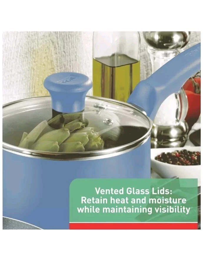 HomeT-fal Excellence Ceramic Non Stick Cookware 10 piece Set Blue New