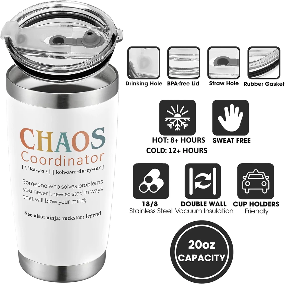 Store New Arrivals Add to Favorite View Feedback Contact Fast deliveries to the customer's home Quality customer service John Make the customers happy! Thank You Gifts for Women, Boss, Coworker, Manager, Office, Nurse - Chaos Coordinator Gifts - Boss Lady Gifts, Boss Lady Gifts for Women, Teacher Gifts - Christmas Gifts for Boss - 20 Oz White Tumbler Description CHAOS COORDINATOR GIFTS FOR WOMEN: The tumbler is a lovely addition to any work desk. It not only adds a touch of humor to an otherwise mundane work life, but it also serves as a reminder of your feelings for your beloved ones. Ideal for coworker gifts for women, boss gifts for women, employee gifts for coworkers women, teacher gifts, gifts for friends female, coworker appreciation gifts ... THANK YOU GIFTS FOR WOMEN: This Chaos Coordinator Cup is a humorous way to show appreciation to fun-loving and cool beloved ones on any occasion. Ideal for thank you gifts for coworkers, boss birthday gifts for women, coworker birthday gifts for women, christmas gifts for boss, christmas gifts for boss lady, christmas gifts for coworkers, christmas gifts for employee, christmas gifts for nurse, boss christmas gifts, boss lady christmas gifts, coworker christmas gifts, nurse christmas gifts ... SAFE & DURABLE STAINLESS STEEL MATERIAL: Made of food grade 18/8 stainless steel material, the White Gift for Boss Female Tumbler is sturdy, reusable, lead-free, not easy to damage, and gently fits into most cup holders. The BPA-free lid prevents liquid splashing which allows you to enjoy your drink safely. DOUBLE-WALL VACUUM INSULATION: With the double-walled vacuum insulation, the Gift for Coworker Women Tumbler can keep the drink hot for 8+ hours and keep the drink cold for 12+ hours in a normal temperature environment. Even if the tumbler is filled with iced or boiled drinks, the tumbler's surface will never get cold or hot to the touch. VERSATILE USE: This Gift for Female Coworker Mug Tumbler is used for indoor and outdoor places like home, car, office, pool, beach, picnics, etc... This cup is also designed to preserve the quality of beverages such as coffee, iced fruit teas, wine, sodas, .... You can toss your bottle in your bag and bring it anywhere without worrying about spills, drips, or condensation. Product Description A FUNNY GIFT FOR YOUR COWORKERS If you are looking for a fun and unique gift for your coworker, boss, mom, woman, or friends, look no further than our funny tumbler! Our tumbler gift is sure to bring a smile to her face. Bright up her working day with this delightful and funny gift! Treat your coworkers to a special and funny humorous tumbler that will bring them joy and relaxation! What sets our tumbler apart is the funny message printed on the front. It will bring a smile to the face of anyone who sees it. GIFTS FOR: Coworker Gifts for Women Boss Gifts for Women Social Worker Appreciation Gifts Teacher Gifts for Women Friendship Gifts for Women Friends A PRACTICAL GIFT FOR HER Our tumbler is made from high-quality stainless steel, ensuring that it will last for years to come. It features a double-wall vacuum insulation, which means that it can keep drinks cold for up to 12 hours or hot for up to 8 hours. The lid is also spill-proof, making it easy for taking on the go. A REMINDER OF YOUR LOVE Not only does this candle have a stylish design, but it also has a touch of humor. It'd be hard for her not to be moved by the saying on this tumbler She can read over and over when relaxing, it will be a reminder of your love. WHY THIS GIFT? With elegant design, the tumbler comes in white that adds luxury, and stylish to the atmosphere. Plus, with its sleek and stylish design, it is sure to be a hit with anyone who receives it. SOME TIPS TO ENHANCE YOUR DRINKING EXPERIENCE We recommend hand washing with warm soapy water and drying well with a soft towel. Do not overfill to av oid leaking when putting a lid on. Do not heat on an open flame or stove. Do not use the microwave oven for heating. To protect your child, please cover the cap after adding the hot water. TAKE NOTE: We encourage you to wash your tumbler before your first use . Do not put a lid on the tumbler when the water boils at 100 degrees Age Range Description Adult Style Casual Capacity 20 Fluid Ounces Number of Items 1 Pattern Letter Print Material Type Stainless Steel Theme Holiday Item Dimensions W x H 3.6"W x 7.5"H Unit Count 1.0 Count Material Stainless Steel Capacity 20 Fluid Ounces Package Type FFP Additional Features Manual Specific Uses For Product Cold Drinks, Hot Drinks Reusability Reusable Item Weight 11.64 ounces Occasion Christmas Special Feature Manual Occasion Christmas Item Weight 11.64 ounces Color White Material Features Insulated Shape Round Product Care Instructions Hand Wash Only Built-In Media Lid Recommended Uses For Product Travel, Home Material Type Free BPA Free Style Name Casual ABOUT US We offer the best prices around on high quality products. Our E-store includes media such as books, movies, music and games while offering electronics, toys, sporting apparel, clothing, tools, general home, garden items and more. SHIPPING We are always working hard to ensure your package arrives as soon as possible. Please understand that some factors like weather, high postal traffic, and the performance of shipping companies are outside of our control. We offer free shipping to the lower 48 states and ship within 2 business days of payment, usually sooner. We do not accept P.O. Boxes. Please provide a physical address. For shipping outside of the continental USA, we only use eBay's Global Shipping Program. The item is shipped to KY and then sent to the rest of the world. International customers are responsible for all duties and taxes. Continue to 'check out' to calculate costs for shipping the item to your country. Messages regarding eBay's Global Shipping Program MUST be directed at eBay EXCLUSIVELY. RETURNS We offer a 30-Day Return Policy on items in which yo