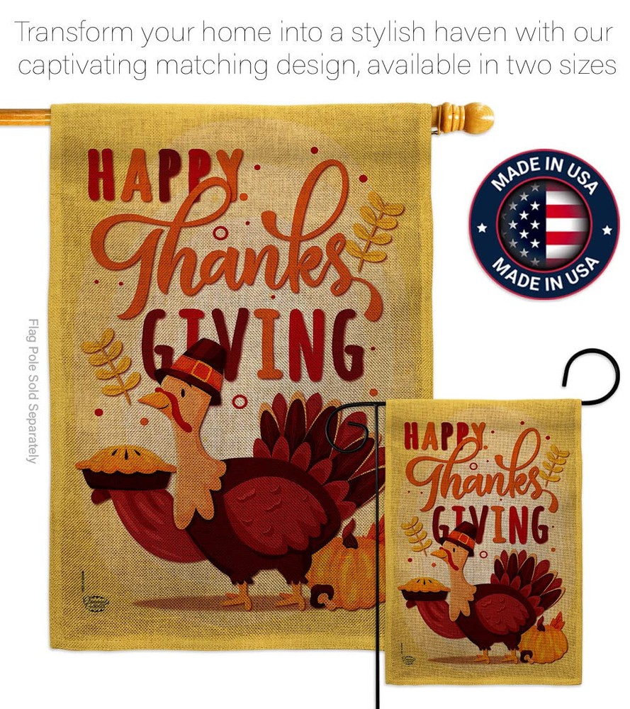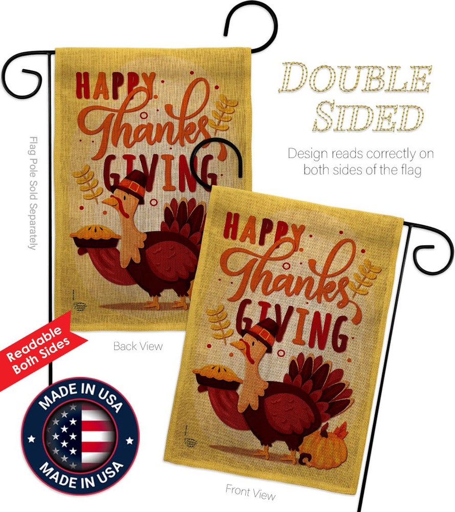 Thanksgiving Beautiful Mini Garden Flag have variety of Garden Flag for all occasions. Uniquely design for hanging indoor or outdoor use. We are committed to offering you exceptional values. Our customers enjoy displaying our Garden Flag for longer periods. Specification: Theme: Thanksgiving Size: Garden Flag 13" x 18.5" Print: Double-Sided Readable: Readable Both Sides Material: Weather Resistant Double Burlap Stitching: Double Stitched Display: Vertical Hang Type: Sleeve Artist: © Ava Storey Special Features: Origin: Made In USA Package Include: 1 pc x Garden Flag 13" x 18.5" Package Decorative Flags For more than a decade, we’ve been dedicated to manufacturing flags with no comparison in quality and beautiful designs. Our flags are made with our Guard material that is soft to the touch and designs can be read correctly on the flag. A feature that our customers will love. We are committed to using eco-friendly inks that won’t leave a foot print in our environment. MPN: OC-TG-G-192228-IP-DB-D-US20-OC 92228 92228 PROUDLY Made In USA - Package And Product Designed In California PURCHASE WITH CONFIDENCE - From 's US Authorized Resellers MADE OF DURABLE - 100% Thick Double Burlap Fabric construction helps resist the wear and tear from frequent use TEXT READABLE BOTH SIDES - Garden Flag Double-Sided Print DURABLE FLAG - Double stitching panels on multiple rows and high quality Sleeve to provide lasting strength VIBRANT COLORS - With UV-Resistant Maintains Its Colors All Season Long FEATURES - Sleeve Hanger fits standard Banner/Flagpole, Bracket, Arbors or stand, SOLD Separately