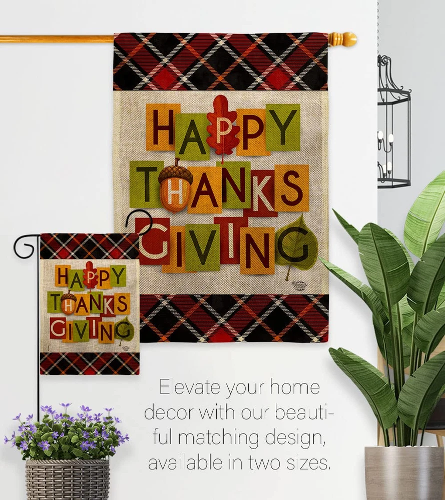 Thanksgiving Beautiful Matching Large House Mini Garden Flags Set have variety of Flags Set for all occasions. Uniquely design for hanging indoor or outdoor use. We are committed to offering you exceptional values. Our customers enjoy displaying our Flags Set for longer periods. Specification: Theme: Thanksgiving Size: House 28" X 40" Size: Garden 13" X 18.5" Print: Double-Sided Readable: Readable Both Sides Material: Weather Resistant Double Burlap Stitching: Double Stitched Display: Vertical Hang Type: Sleeve Artist: © Eva Lee Special Features: Origin: Made In USA 92632 Package Include: 1 pc x Large House 28" X 40" 1 pc x Mini Garden 13" X 18.5" For more than a decade, we’ve been dedicated to manufacturing flags with no comparison in quality and beautiful designs. Our flags are made with our Guard material that is soft to the touch and designs can be read correctly on the flag. A feature that our customers will love. We are committed to using eco-friendly inks that won’t leave a foot print in our environment. MPN: OC-TG-S-192632-IP-DB-D-US21-OC 92632 92632 PROUDLY Made In USA - Package And Product Designed In California PURCHASE WITH CONFIDENCE - From 's US Authorized Resellers MADE OF DURABLE - 100% Thick Double Burlap Fabric construction helps resist the wear and tear from frequent use TEXT READABLE BOTH SIDES - Flags Set Double-Sided Print DURABLE FLAG - Double stitching panels on multiple rows and high quality Sleeve to provide lasting strength VIBRANT COLORS - With UV-Resistant Maintains Its Colors All Season Long FEATURES - Sleeve Hanger fits standard Banner/Flagpole, Bracket, Arbors or stand, SOLD Separately