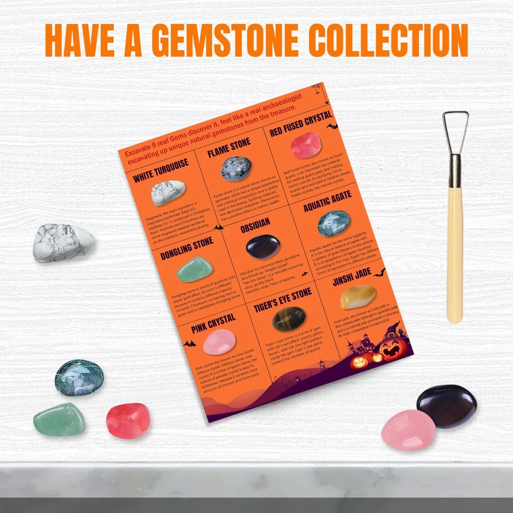 Thanksgiving Gifts Pumpkin Dig Kit, 3 Pcs Pumpkin Bath Soap Orange with Gemstone Inside Halloween Toys for Explore Discover Gems Crystal Halloween Gift for : pumpkin digging kit combines science education, Exploration and entertainment, and is packaged in a beautiful gift box, highly recommend this pumpkin dig kit for your little geologist or curious Pumpkin Soap Digging Kit: comes with three orange pumpkin soaps, each pumpkin has 3 gems or crystals inside; with a gem instruction sheet and a digging tool; The digging aspect of the kit adds an element of surprise and anticipation Upgrade Diversified Gameplay: This digging kit is made of soap, and the digging process does not produce dust; the pumpkin scraps after digging can be collected for hand washing, or melted with water to make bubble liquid, or put it in a container and use hot water above 140 degrees Fahrenheit to heat and melt, then pour it into a mold to make the model you want; please use it under adult supervision Dig It Up: This pumpkin dig kit is a fun and engaging activity for Halloween enthusiasts, dig and find 9 gems, namely white turquoise, flame stone, red molten crystal, east spirit stone, obsidian, aquatic agate, rose quartz, tiger eye stone, gold stone jade; the dug gems or crystals can be combined Instructions to learn gem knowledge Halloween Science Kit: The pumpkin dig kit will take some time to dig out, our gem mining kit toys allows your to experience the process of "hands-on digging and discovering gems, triggering thinking, and finding answers"; At the same time, parents (teachers) can accompany their children to explore together