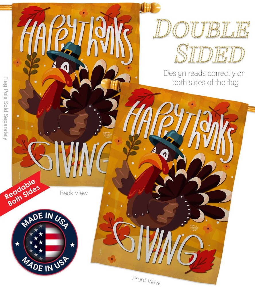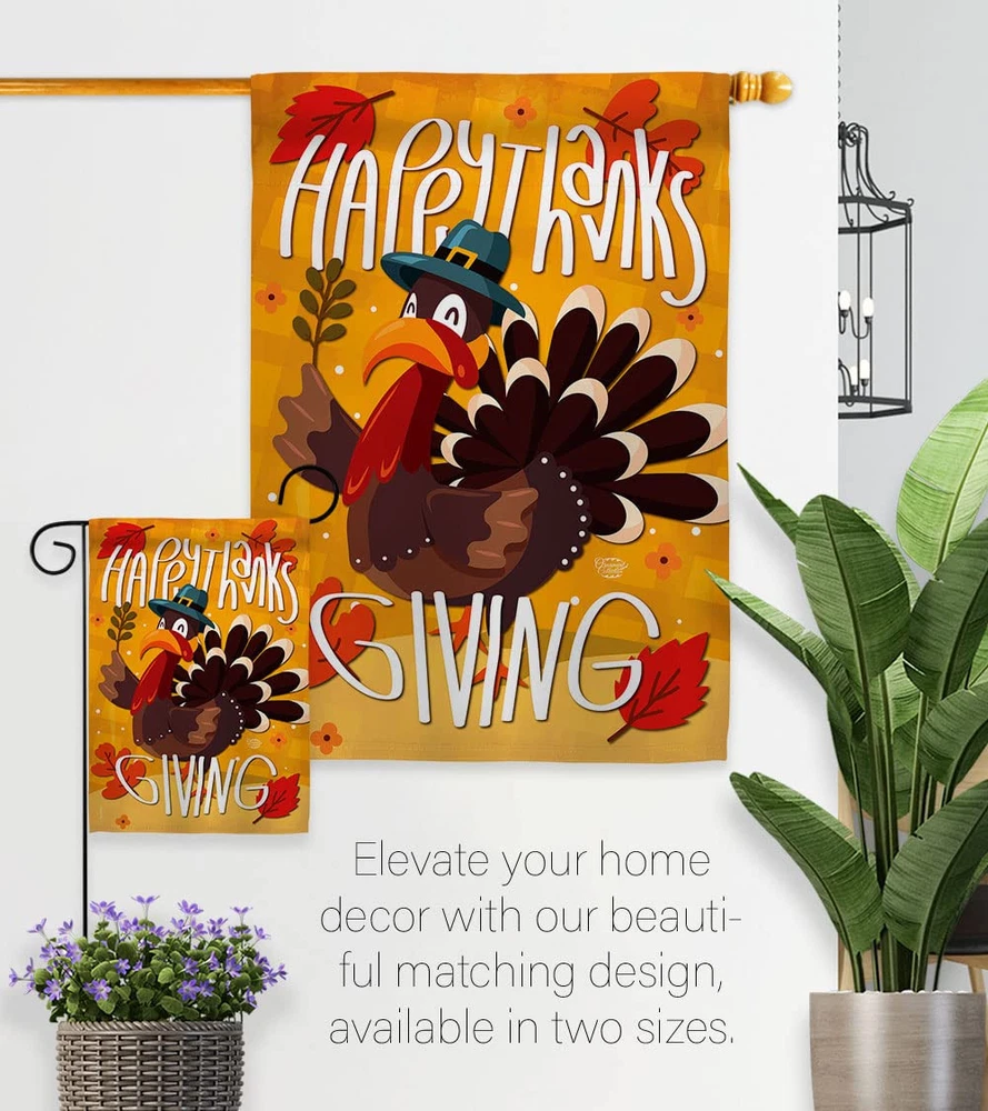 Thanksgiving Beautiful Large House Flags Pack - 2 Sets have variety of House Flags Pack for all occasions. Uniquely design for hanging indoor or outdoor use. We are committed to offering you exceptional values. Our customers enjoy displaying our House Flags Pack for longer periods. Specification: Theme: Thanksgiving Size: House Flags Pack 28" x 40" Print: Double-Sided Readable: Readable Both Sides Material: Weather Resistant 3 Layers Blockout Stitching: Double Stitched Display: Vertical Hang Type: Sleeve Artist: © Molly Will Special Features: Origin: Made In USA Package Include: 2 pc x House Flag 28" x 40" Package Decorative Flags For more than a decade, we’ve been dedicated to manufacturing flags with no comparison in quality and beautiful designs. Our flags are made with our Guard material that is soft to the touch and designs can be read correctly on the flag. A feature that our customers will love. We are committed to using eco-friendly inks that won’t leave a foot print in our environment. MPN: OC-TG-HP-192043-IP-BOAE-D-US17-OC 92043 92043
