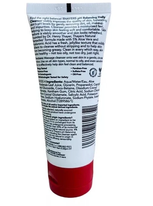 Thayers pH Balancing Daily Cleanser 5% Filet Aloe Vera • Hyaluronic Acid 3 oz.