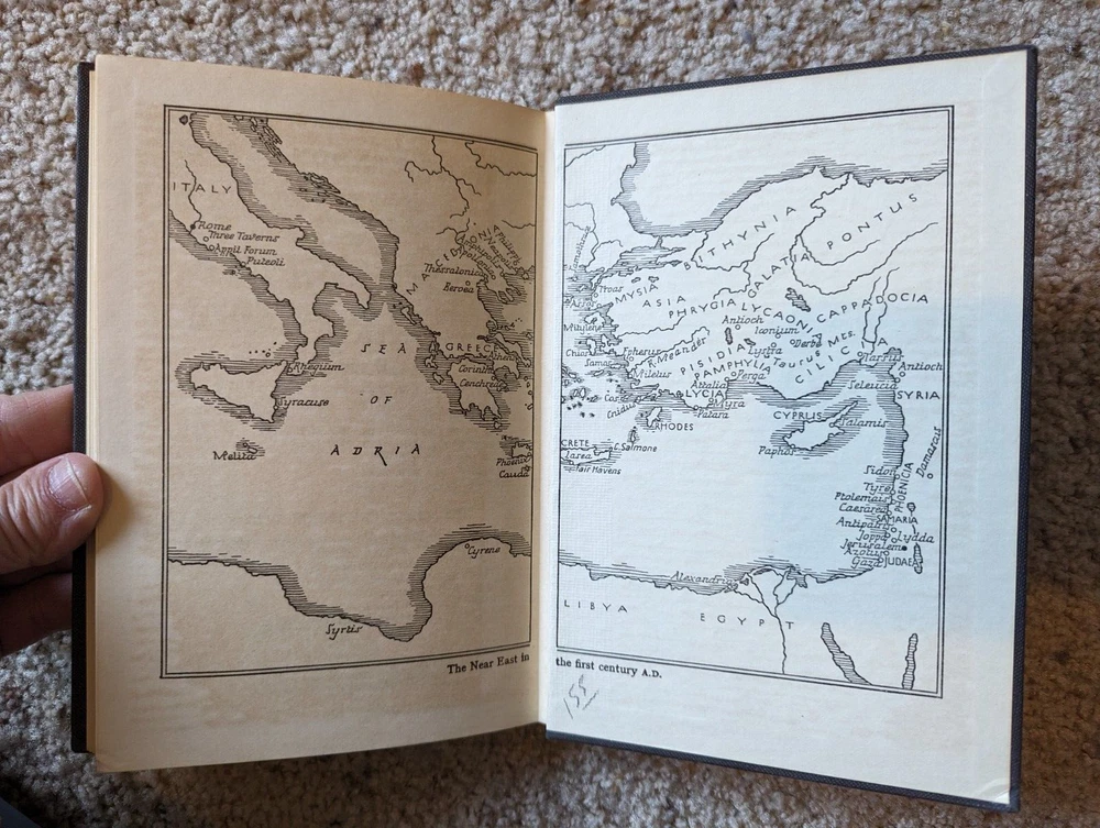 This is a 1957 edition. Only marking I see is the "155" on the back inside cover. Binding is faded, but tight. Neat little book giving not only the text of the book of Acts in the Bible but other background information about the people and places encountered therein. · I'm happy to combine shipping to save you money, so check out my other auctions! · Feel free to make an offer on an individual item or on multiple items for a great deal.