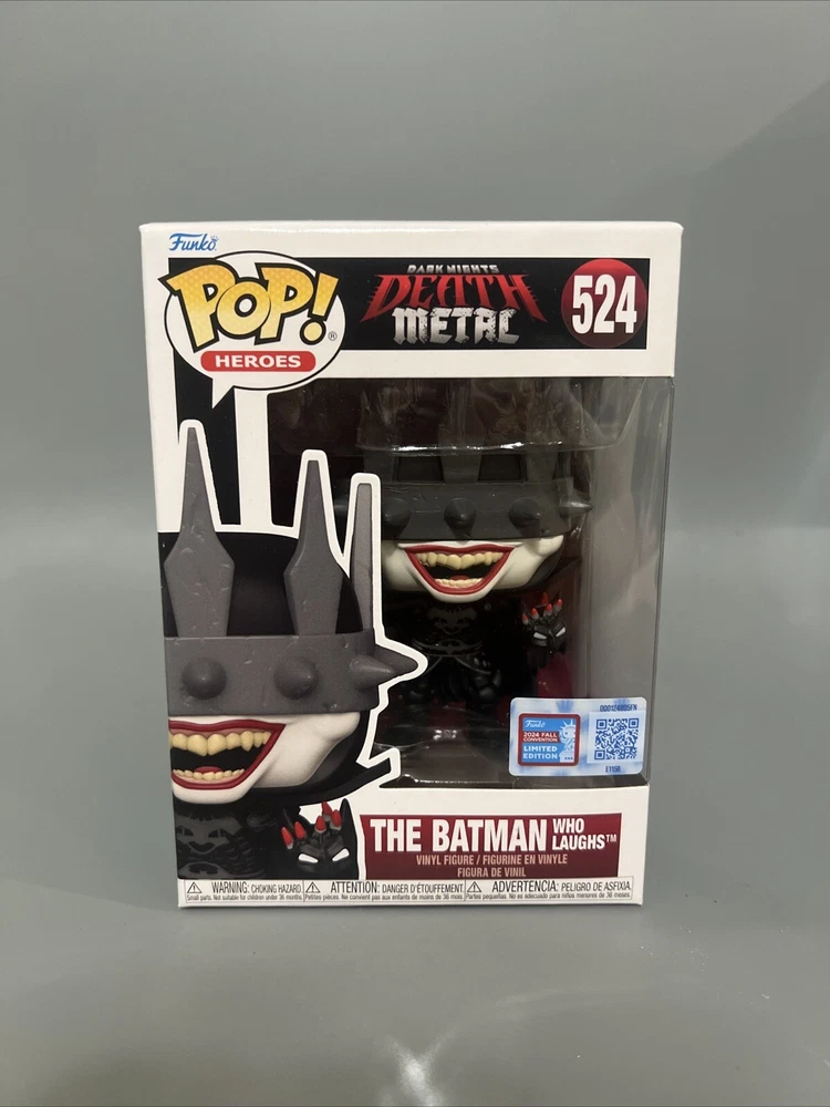 Introducing the Funko Pop! vinyl figure of The Batman Who Laughs from the DC Universe. This limited edition and exclusive figure, released at New York Comic Con, features Batman, The Joker, and The Batman Who Laughs in an incredible design that captures the essence of the Dark Nights: Death Metal storyline. Made of high-quality vinyl material, this figure is approximately 4.45" in size and comes with a protector for added durability. This Funko Pop! figure is part of the Pop! product line and belongs to the Heroes collection. It is a must-have for any fan of the comics and is suitable for ages 3 and up. Don't miss your chance to own this unique and rare piece of collectible history.