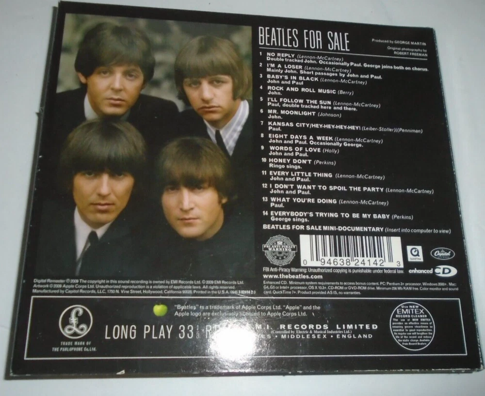 The Beatles Beatles for Sale (CD) Album EMI 1987 Digipack Photos shows exact CD to be shipped to you, showing both sides, The Digipak is in excellent condition, From a collector, who only played once and then stored it. We gladly combine shipping on additional CD's, just $1 more in shipping We have received a large collection from an audiophile, who cared for these CD's Rock - Jazz - Classical - all genres We will be listing more daily- Go to our store then CD-LPS Category to easily find all CD's. To combine shipping all purchases must be made within 5 days. kp/cd1