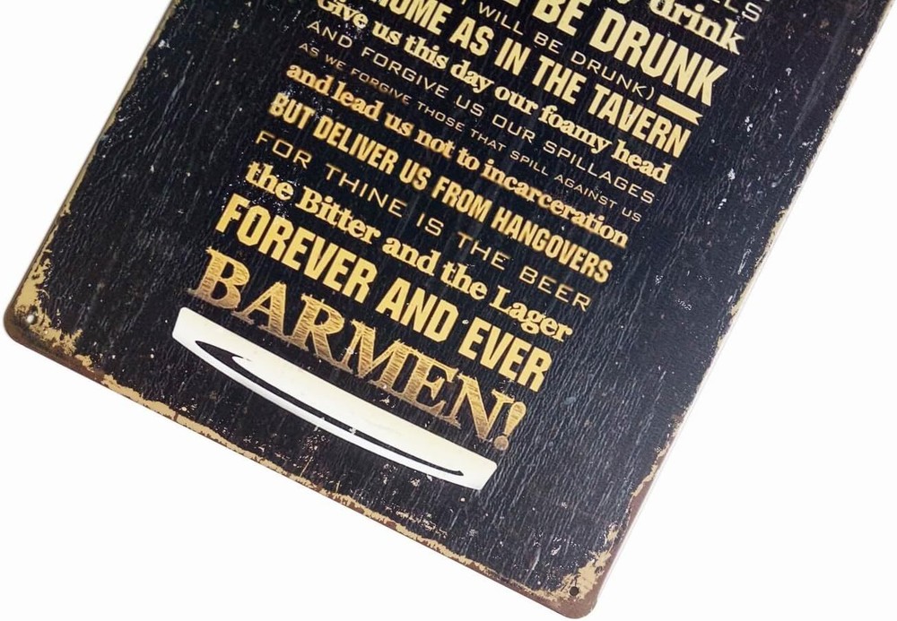 Product Description Features - Color: As the pictures shown. - Material: Metal tin. - Size: 12" x 8" / 30 x 20 cm. - Four small pre-drilled holes in each corner of this sign, can be mounted on the wall by nails on 4 corners or double-sided tape, or can be put in table, or hang on the wall. - Vintage metal tin signs are always a hit for gift giving and home decorating, this charming collectible is perfect for your restaurant, home, bar,pub,office,shop or garage. - Our tin sign vintage decorative painting is manufactured with folded edges for safety and stability. - Metal tin sign safe and stabili, the graphics printed with uv resistant inks and wordings will withstand the elements and will not fade, no matter the sun, rain, or other extreme weather.