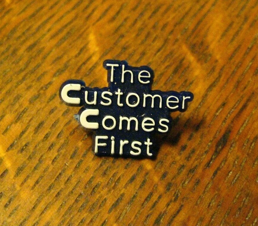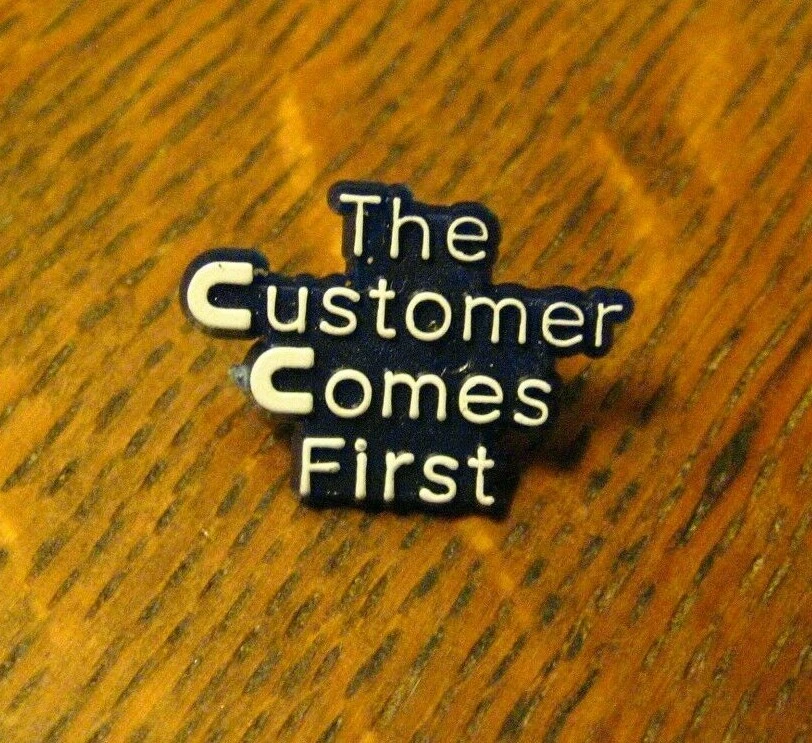 The Customer Comes First Vintage Lapel Pin - Service Standard Sales Rep Badge Measurements: 3/4" X 1/2" Material: Blue & White Hard Plastic / Metal Post & Fastener Maker's Marks: None Condition: Very Good to Excellent. Light age and wear. Gift Box Included. Shipping within the USA is FREE. International Shipping Available. Check My Other Items. Please write with Questions.
