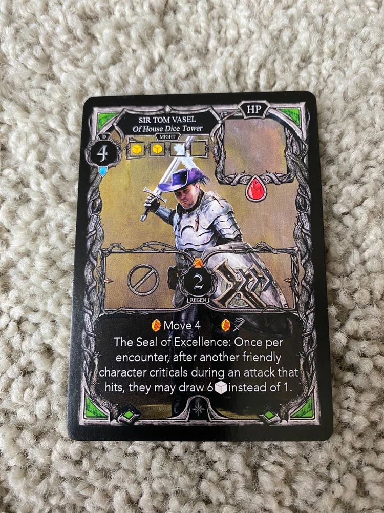 New 2023 Dice Tower promo item - Promo Oathsworn Into the Deepwood Sir Tom Vasel Promo Ally Item pictured is the actual item(s).