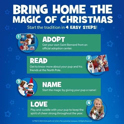 Meet the newest addition to The Elf on the Shelf collection - the Elf on the Shelf Pets Book St. Bernard Dog Plush Animal! This adorable figurine is perfect for the Christmas season and comes in a small size of 9 inches in length and 4.3 inches in height, with a weight of 1 pound. The plush material and multicolor design make this St. Bernard dog a perfect addition to any collection. The figurine is boxed and comes with a book, making it a great gift for teens. The Elf on the Shelf Pets Book St. Bernard Dog Plush Animal is a traditional piece with a seasonal theme, perfect for any collector.