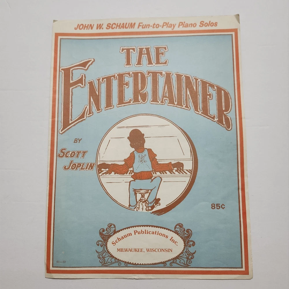 The Entertainer by Scott Joplin Piano Solo Black Americana Sheet Music 1974