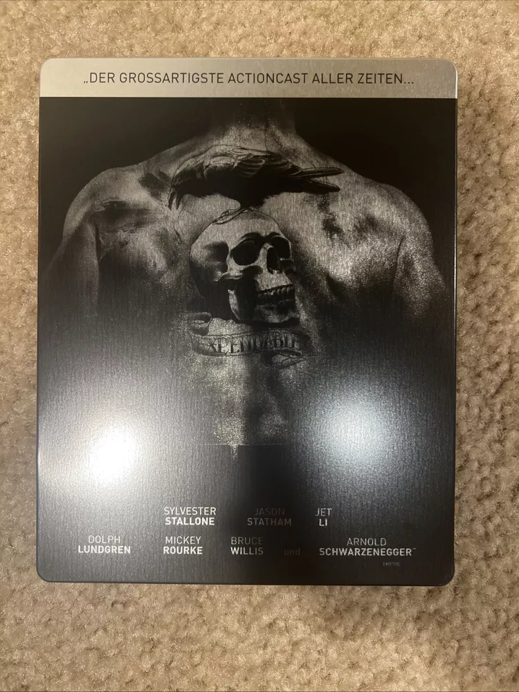 From my personal movie collection. No code. No disc scratches. No case dents or major scratches or chips. It is in like new condition. Being sold as is. See pictures for exact item you will receive. The Title "THE EXPENDABLES" Skull Logo and Border are all Embossed. This is a Germany Media Market Exclusive Release. The FSK Sticker is removable. This Blu ray is REGION B LOCKED and will Not play in a USA blu ray player. You will need a Region Free Blu Ray Player to Play This Disc. Thank you.
