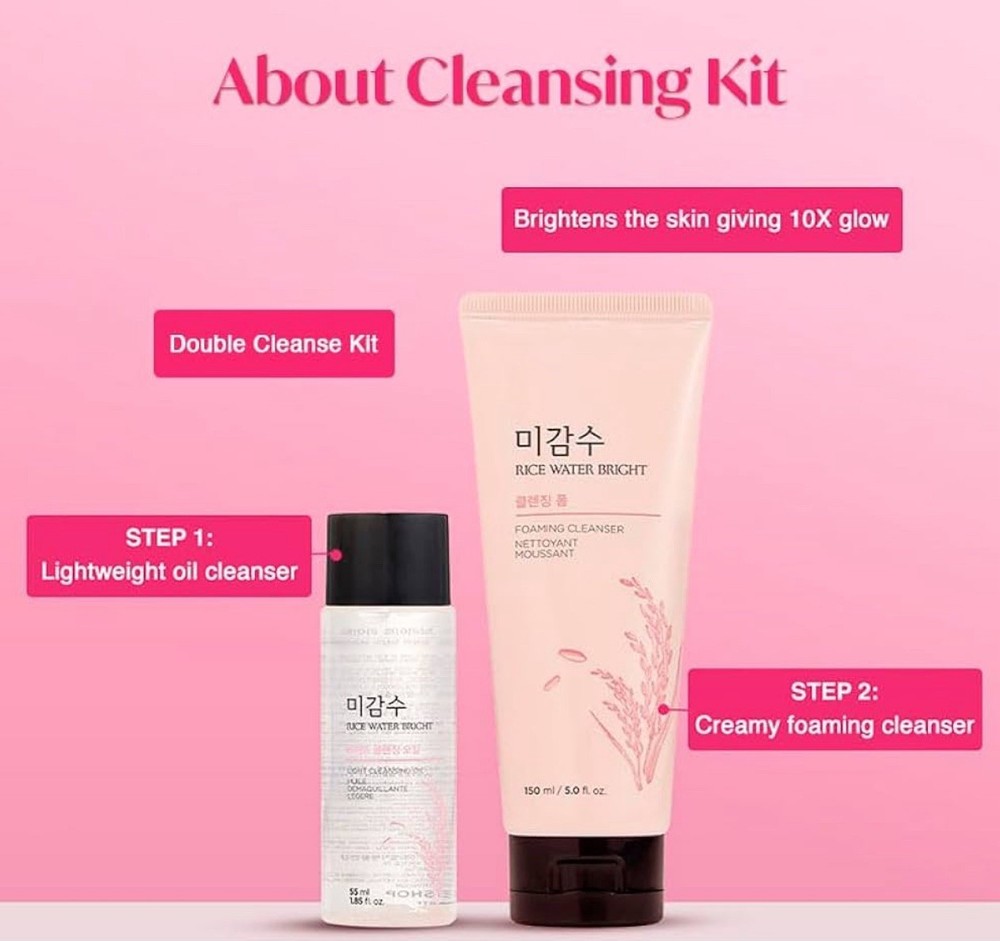 The Face Shop Rice Water Bright Trial Kit includes a Rice Water Bright Foaming Face Wash, suitable for all skin types. This set includes a cleanser and cleansing water, formulated with rice water and rice as main ingredients. With a gentle exfoliating effect, this cleanser is designed to remove makeup and excess oil, providing deep cleansing while containing natural vitamins. Suitable for unisex use, this product has a natural scent and is free from artificial fragrances. Made with all-natural ingredients, this product offers a solution for acne-prone skin with its SPF 2 formula, suitable for daily use.