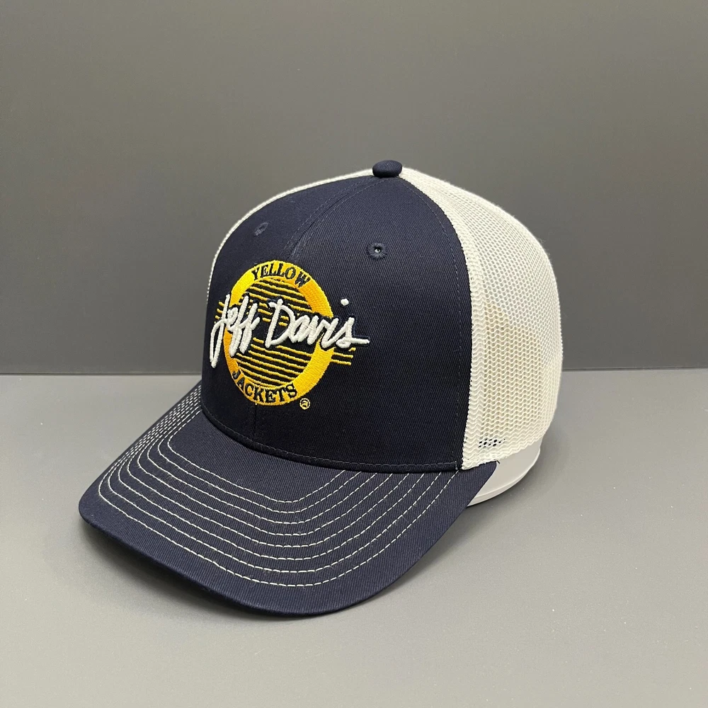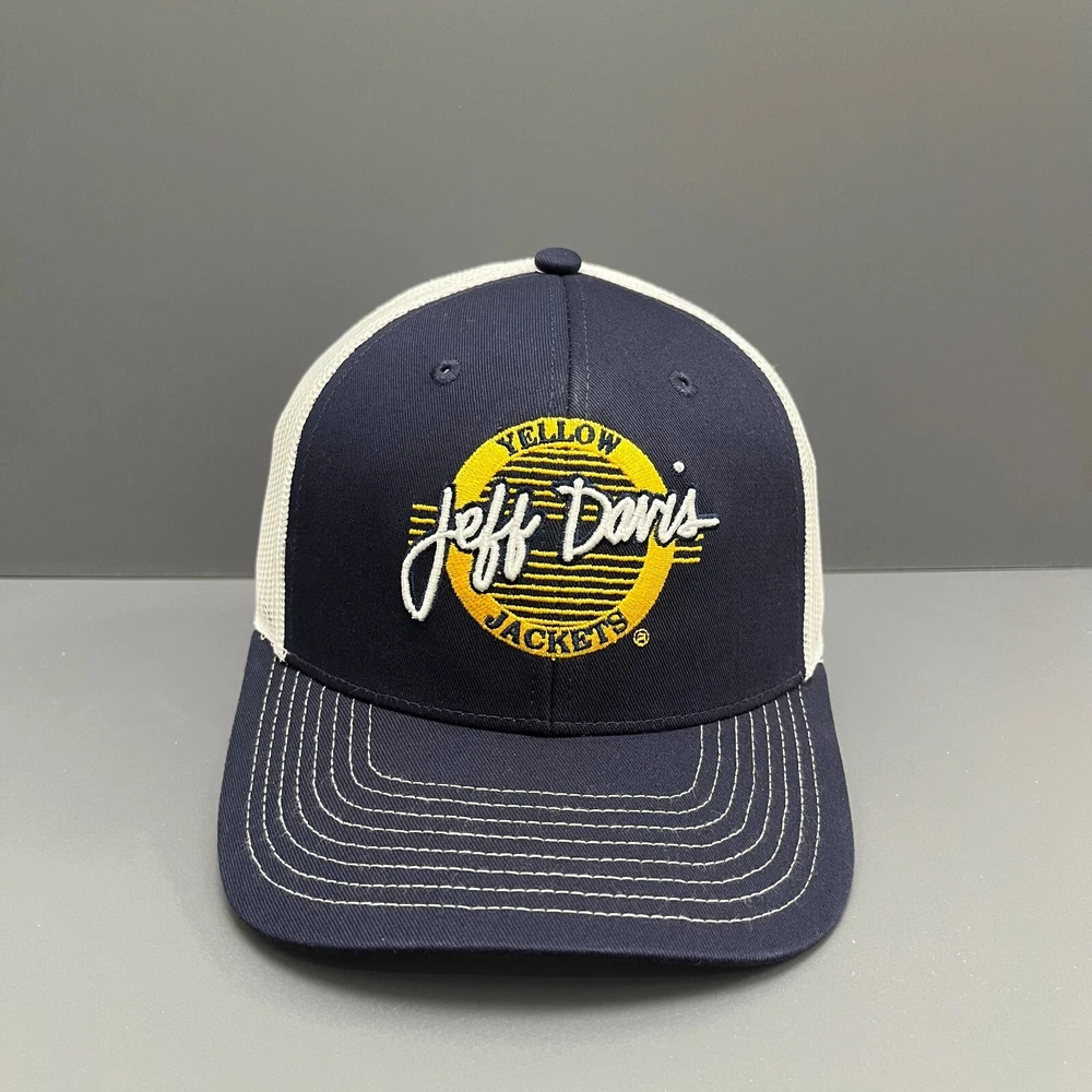 PRODUCT DESCRIPTION Show Your Yellow Jackets Pride Support the Jeff Davis Yellow Jackets with this The Game Trucker Cap . Featuring an embroidered logo of "Jeff Davis Yellow Jackets" in yellow and white on a navy front panel with a white mesh back, this cap is perfect for fans of high school and college sports. The adjustable snapback closure ensures a comfortable fit, while the structured front panels and curved visor provide a classic trucker cap look. Brand & Features Brand: The Game Embroidered logo of "Jeff Davis Yellow Jackets" in yellow and white Navy front panel with white mesh back Adjustable snapback closure for a custom fit High-quality stitching Structured front panels and curved visor Specifications: • Team: Jeff Davis Yellow Jackets • Hat Type: Trucker Cap • Material: Cotton front panel, Polyester mesh back • Closure Type: Adjustable snapback closure • Color: Navy and White • Size: OSFM (One Size Fits Most) • Sport/Category: High School/College Sports Merchandise ABOUT US Hat Stack - Your trusted source for authentic headwear. We offer a wide range of premium caps designed to enhance your casual wardrobe. Warranty & Authenticity We guarantee quality and satisfaction with every purchase. DELIVERY All orders are processed within 1 day. We ship via SpeedPak Standard with an estimated delivery time of 7-19 days. Keywords The Game, Jeff Davis Yellow Jackets, Trucker Cap, Snapback Cap, Adjustable Cap, Navy Cap, White Mesh, Embroidered Logo, High School Sports, College Sports, Sports Merchandise, OSFM.