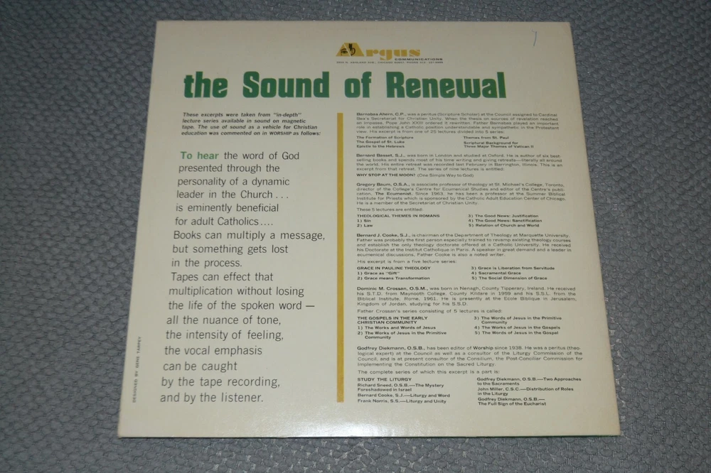The Living Voice of Renewal ~ Barnabas Ahern, Bernard Basset, Gregory Baum, Bernard Cooke, Dominic Crossan, Godfrey Diekmann The vinyl is VG+ The sleeve is VG+ (see photos) NICE and CLEAN from SMOKE-FREE HOME ~ GREAT PACKING and FAST SHIPPING!!! $4.50 TO SHIP UNLIMITED RECORDS ~ ANY OTHER RECORDS ORDERED AFTER THE FIRST WILL SHIP FOR FREE!!! We have many more awesome and unique records for sale through our eBay store at https://myworld.ebay.com/briwah ($4.50 unlimited shipping does not apply to orders outside of the U.S.A but we will be happy to offer as much of a discount as possible on international orders)