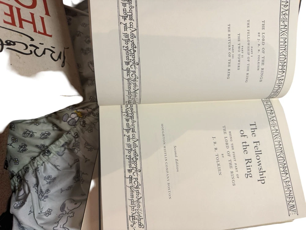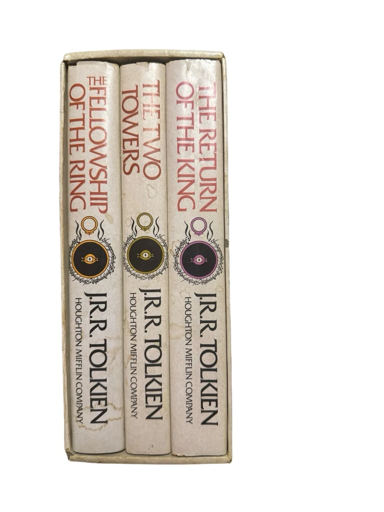 This set includes: J.R.R. tolkien's The Fellowship of the Ring, The Two Towers and The Return of the King. Comes with maps! Very good condition considering the long term storage. Tried to include the most pictures. Please let me know if you are looking for any other pictures! Offers welcome