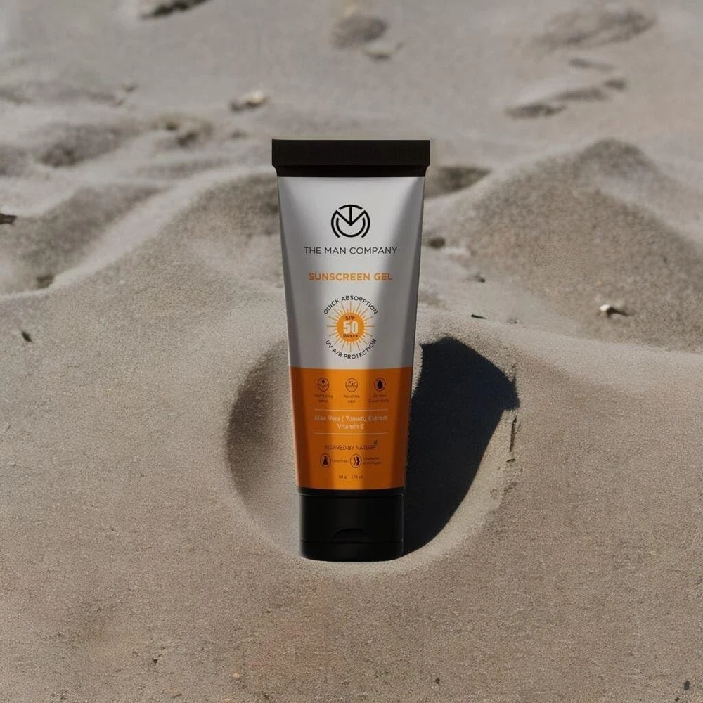 About this item UVA & UVB PROTECTION: Sunscreen helps protect your skin from the harmful effects of UV & UVB emitted by the sun. Sunscreen forms a protective barrier on the skin that absorbs or reflects UV rays preventing them from penetrating the deeper layers of the skin and causing sunburn High SPF & LIGHTWEIGHT FORMULA: Formulated with SPF 50, our sunscreen gel offers optimal protection against both UVA and UVB rays, ensuring your skin stays safe even on the brightest days. Our sunscreen gel absorbs quickly into the skin with a lightweight and non-greasy formula, providing effective protection without leaving a sticky or oily residue. SKIN FRIENDLY: Our sunscreen gel is suitable for all skin types, including oily and acne-prone skin. It's non-comedogenic, so you can enjoy sun protection without worrying about clogged pores or breakouts. COMPLETE SOLUTION: With The Man Company Sunscreen Gel, you have a complete solution to all the problems caused by sun damage. Protect your skin, maintain its health, and enjoy the great outdoors without worries. PROTECTION AGAINST HYPERPIGMENTATION: Sun exposure can trigger the production of melanin in the skin, leading to hyperpigmentation such as dark spots. Sunscreen helps prevent the formation of these pigmentary changes by blocking UV-induced melanin production. YOUTHFUL LOOK: UV radiation can accelerate the aging process of the skin, leading to wrinkles, fine lines, and sagging skin. By protecting your skin from UV damage, sunscreen keeps your skin looking youthful. Safety Information: Store in a cool and dry place. Ingredients: Tomato Extract, Aloevera extract & Vitamin E Directions: Apply the sunscreen gel on exposed skin 20 minutes before stepping out. Reapply every 2 hours to ensure maximum protection from the sun. Must be applied even while staying indoors. Product Description Play Video Also Available in Spray! Sunscreen Gel SPF 50 PA+++ Stay Sun Safe Every Day Sunscreen Gel SPF 50 PA+++ is infused with nourishing Aloe Vera, rejuvenating Tomato Extract, and skin-loving Vitamin E, this non-comedogenic, oil-free formula provides superior sun protection without leaving any white cast. Sunscreen Spray SPF 50 PA+++ Stay Sun Safe Every Day Experience the freedom of flawless skin with our non-comedogenic, oil-free formulation. With its quick absorption and matte effect, it leaves no oily residue behind, ensuring a smooth and shine-free finish.