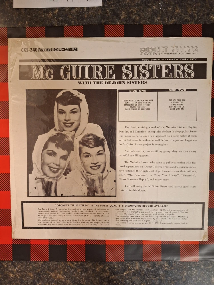 The Mcguire Sisters with The De John sisters Vinyl LP Coronet 1964 Open Shrink