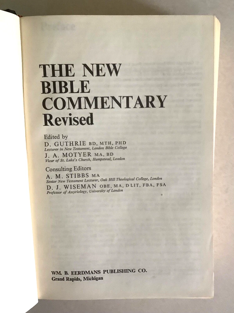 The New Bible Commentary Revised, Third Edition, 2nd Printing, 1971 hardcover in good condition. The spine and covers are solidly attached; a bit of a tilt to the spine. Some edge and corner wear to the covers; some handling marks and scuffs to the covers. Pages are clean with no writing found inside. See photos. Shipped with USPS Media Mail.