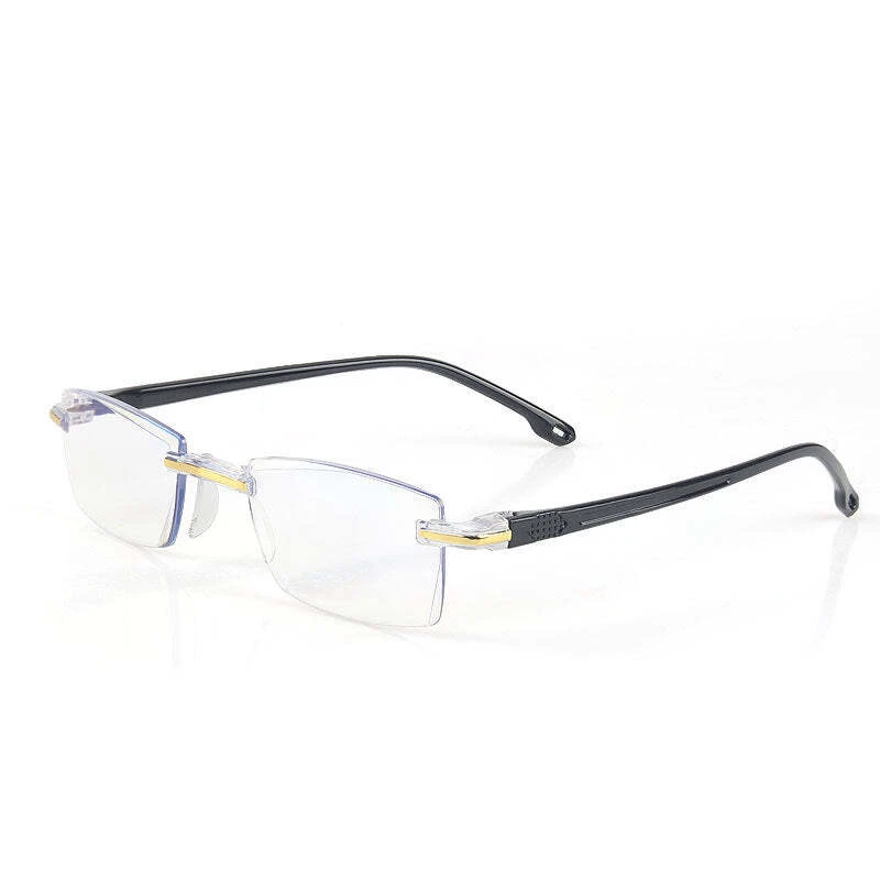 Product information: Material: PC Style: no frame Suitable for face shape: round face Style: Vintage Degrees: 100 degrees (anti-blue light), 150 degrees (anti-blue light), 200 degrees (anti-blue light), 250 degrees (anti-blue light), 300 degrees (anti-blue light), 350 degrees (anti-blue light), 400 degrees (anti-blue light) Packing list: glasses*1
