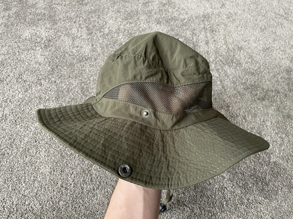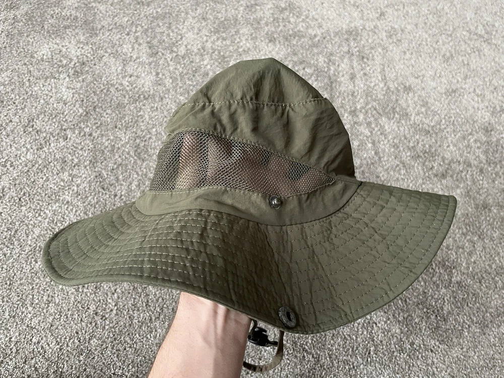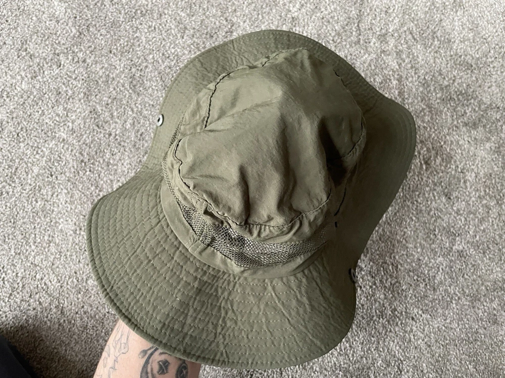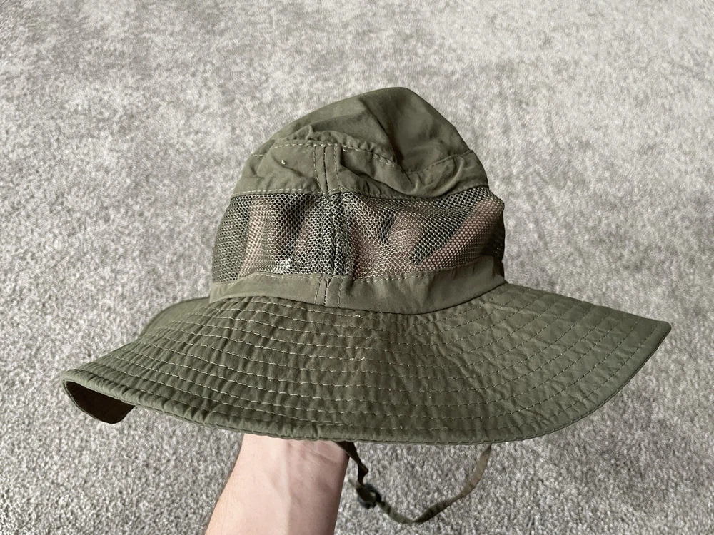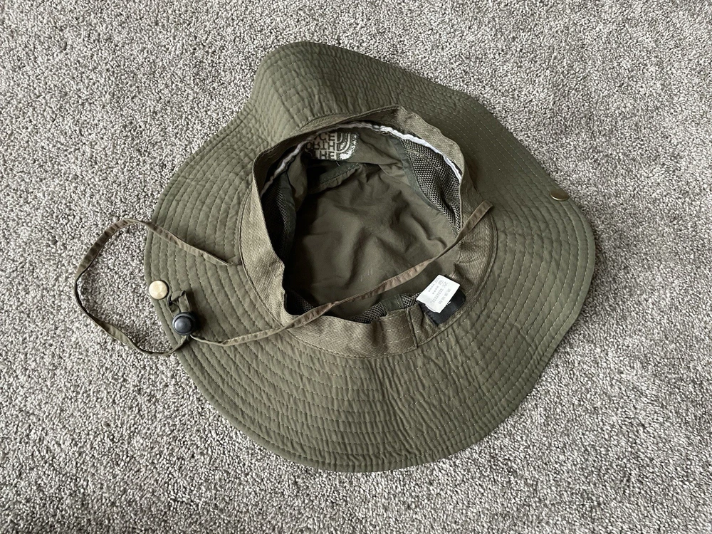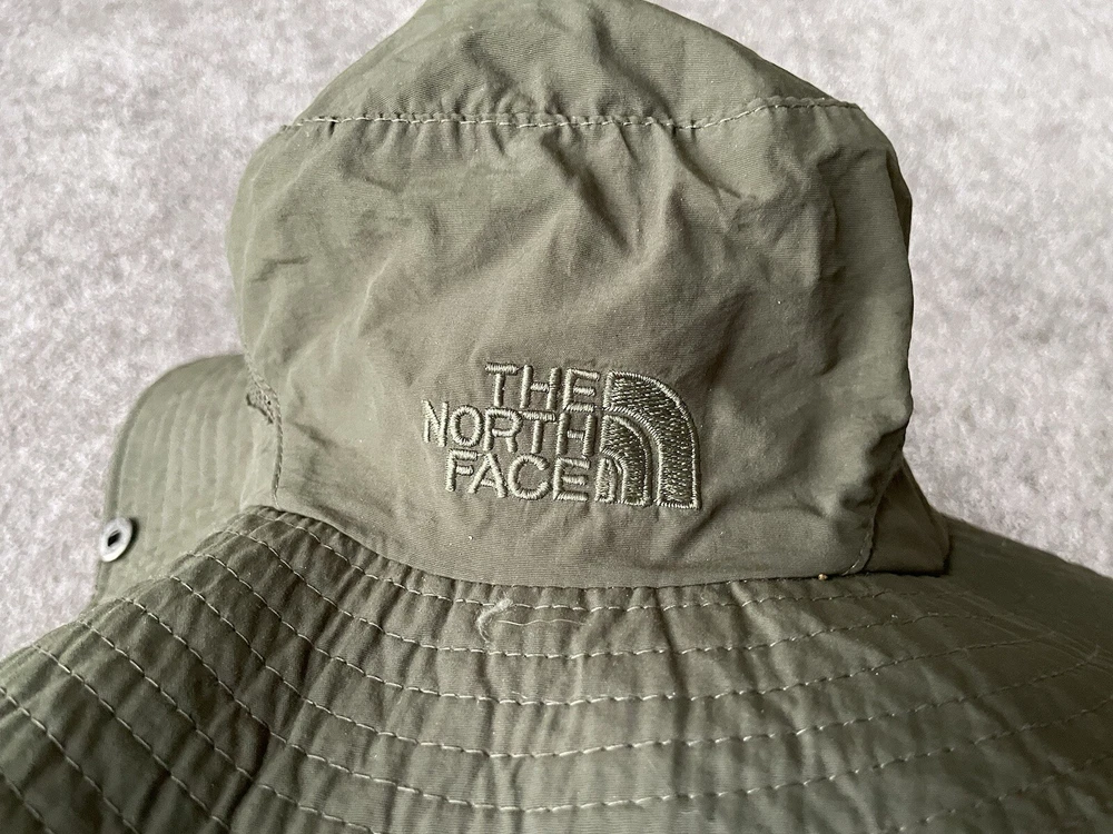 Get ready for your next outdoor adventure with this army green bucket hat from The North Face. Made with lightweight and breathable canvas fabric, this hat is perfect for travel, casual wear, and work. It comes in one size to fit all, and features a solid pattern with a nature and army theme. This bucket hat is perfect for men who love to hike, explore the great outdoors, or simply want to add a touch of style to their wardrobe. It is signed with the iconic The North Face logo. Whether you're going on a safari or just taking a walk in the park, this hat is the perfect accessory to keep you cool and comfortable.