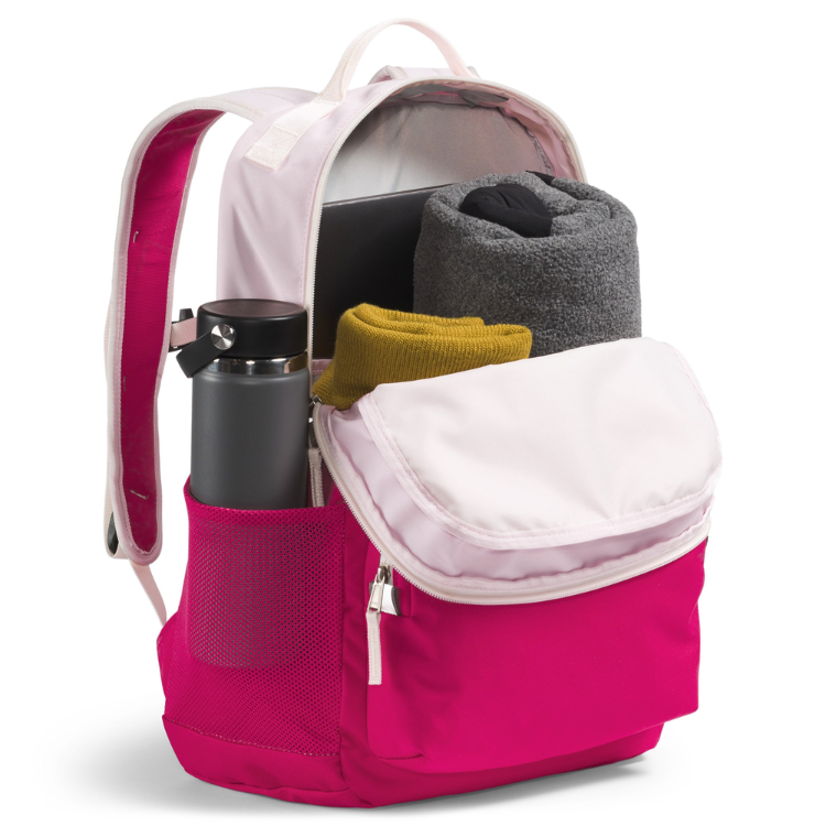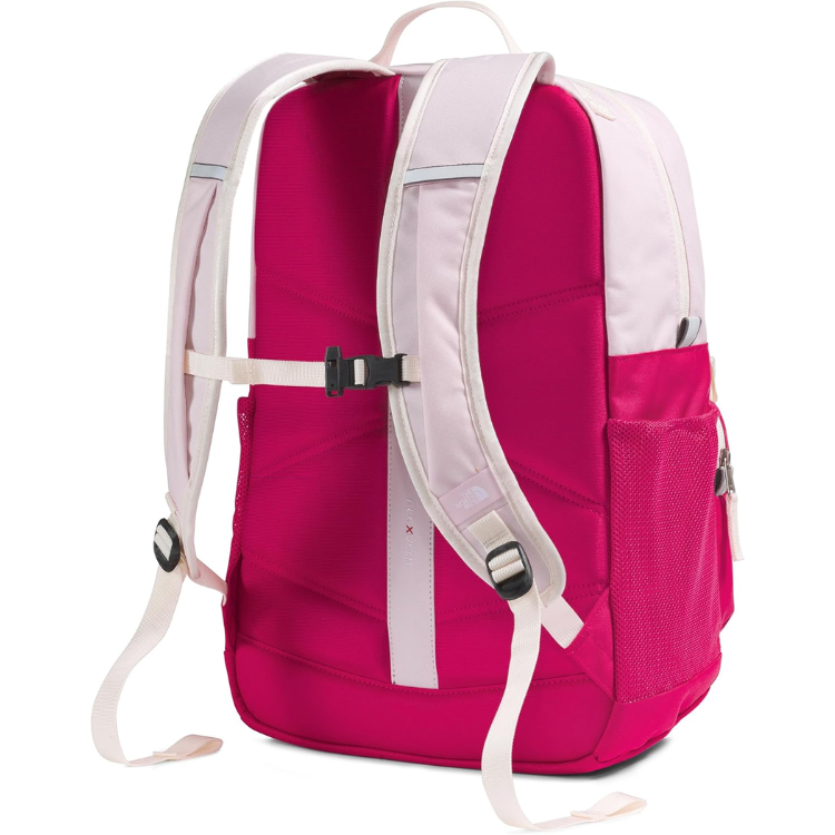 Discover the perfect backpack designed specifically for kids with The North Face Chuckwalla Pack in a charming Pale Blossom shade. Combining comfort, durability, and smart organization, this kids’ daypack is ideal for school, travel, and everyday adventures. Comfort and Support: Equipped with the innovative FlexVent™ suspension system, this backpack features articulated shoulder straps and a rounded back panel to provide ergonomic comfort tailored for young shoulders and backs. Certified by the American Chiropractic Association, it ensures your child carries their essentials comfortably all day long. Spacious and Organized: The large main compartment easily stores books, lunch, snacks, and other daily essentials. A padded laptop sleeve fits up to a 16-inch laptop or tablet, offering extra protection for electronics. The secure zippered front pocket provides quick access to smaller items like keys, pens, or a phone. Hydration and Safety: Stay hydrated on the go with two stretch-mesh water bottle pockets. For added safety, the adjustable sternum strap includes a breakaway whistle buckle, and reflective details increase visibility in low-light conditions. Durability and Eco-Friendliness: Crafted from sturdy 600-denier and 1200-denier recycled polyester, this backpack is built to last and supports environmental sustainability by using recycled materials. Perfect Size for Kids: With dimensions of 17.75" x 12.25" x 7", the Chuckwalla Pack is designed to fit comfortably on kids with a torso length up to 17.75 inches, making it ideal for everyday use without feeling bulky or heavy. Why Choose The North Face Chuckwalla Pack? Trusted quality from a leading outdoor brand. Designed for active kids who need both style and function. Lightweight, durable, and easy to carry. Stylish Pale Blossom color that kids love. Make your child’s day easier and more organized with The North Face Chuckwalla Pack – the ultimate kids’ backpack for school, travel, and beyond.