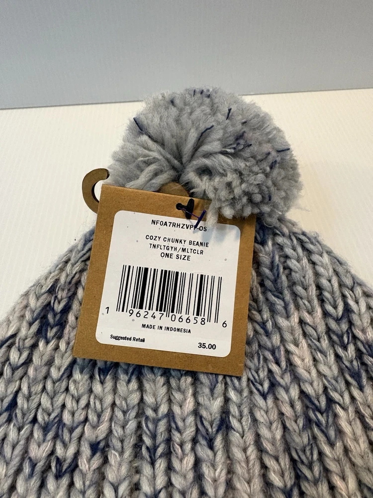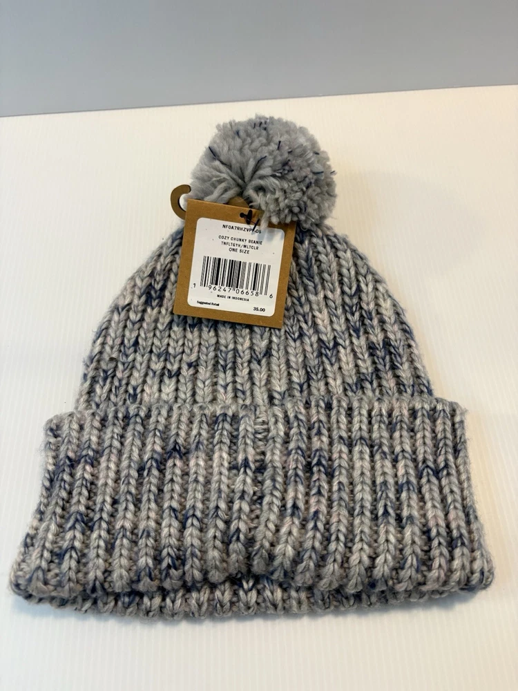 The North Face Cozy Chunky Cabin Beanie. Product Details Feature Description Material A blend of acrylic and recycled polyester yarn with a high-pile fleece lining for the kids' version. Design Features a chunky knit, textured cable detailing, a cuffed brim, and a multi-color yarn pom-pom. Fit Described as a deep, full-coverage fit that is roomy and comfortable. Color multicolor ✨ Shipping the Same Day 📦 Shipped with care 🔄 30-Day Free Returns (under not as described 💖 Thank you for shopping at Karo’s