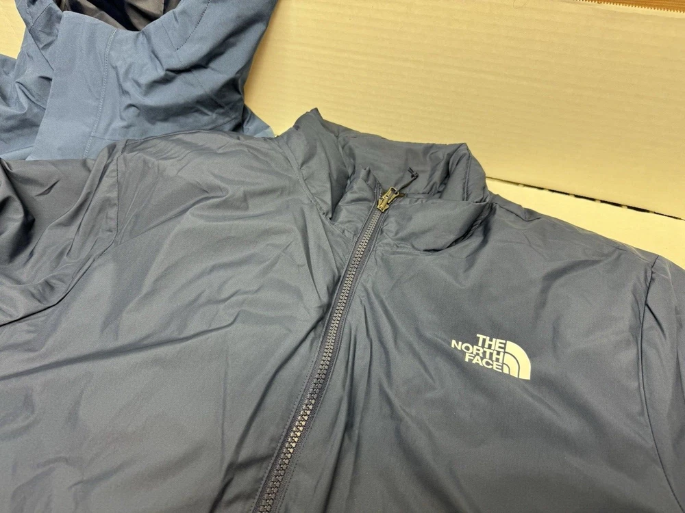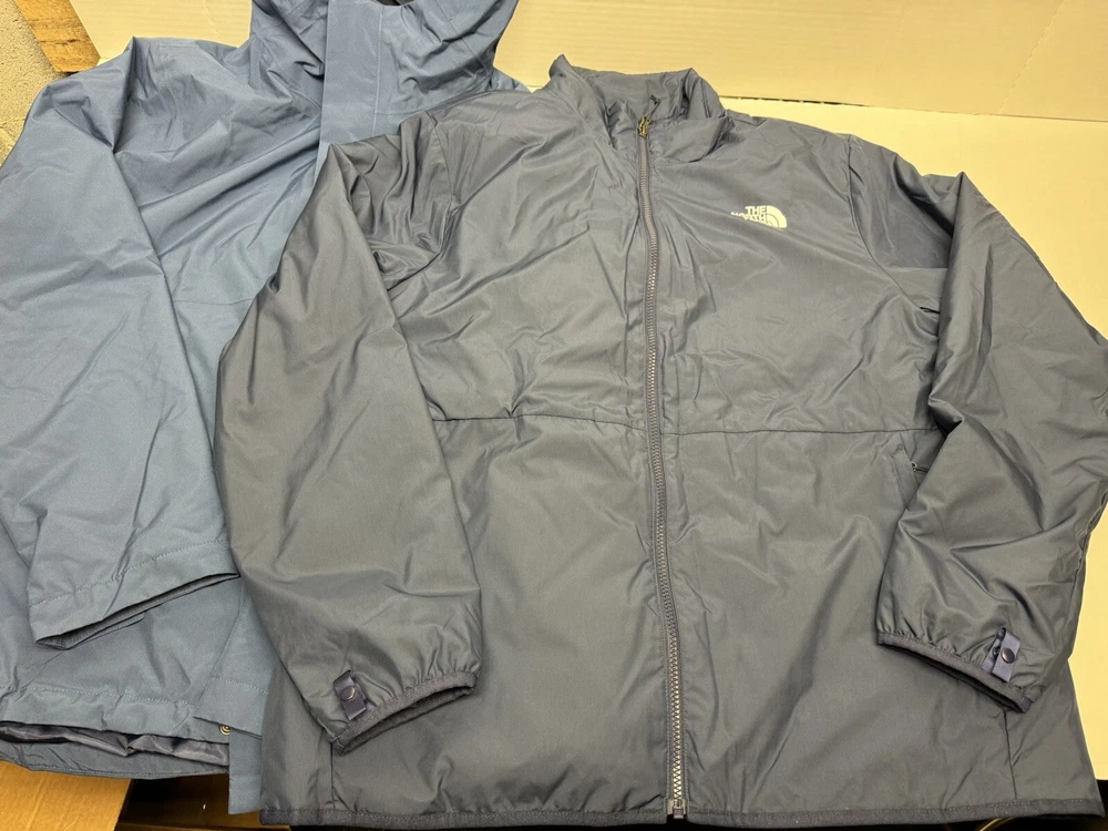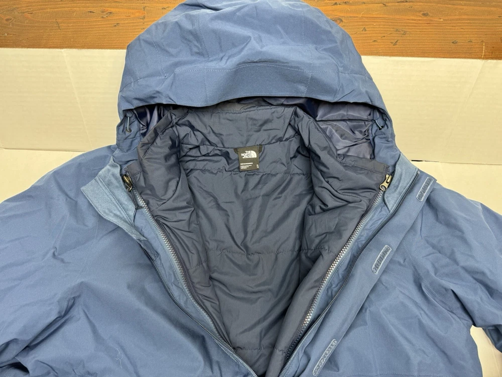 The North Face Men's Carto Triclimate Jacket - Blue - XL (3 in 1 Coat) This was an unused return to the store, no tags but in great like new condition, 10-10 condition on both coats The North Face's Carto Triclimate Jacket is a waterproof, breathable and windproof DryVent 2L shell paired with a zip-out, insulated liner jacket. It can be adapted for total comfort in almost any situation. PRODUCT FEATURES: • [Outer Jacket] Standard fit • Heat transfer logo on left chest • Heat transfer logo on left chest and back-right shoulder • Outer Lining: 75D 68 G/M 100% Polyester Taffeta With Non-PFC DWR Finish • Outer Insulation: 60% Recycled Polyester In Body, 120 G In Collar, 60 G In Sleeves • Outer Body: 75D 116 G/M DryVent 2L "100% Recycled Polyester With Non-PFC Durable Water-Repellent (Non-PFC DWR) Finish • Inner: 50D 72 G/M 100% Polyester Taffeta • Inner Insulation: 100 G Heatseeker Eco 70% Post-Consumer Recycled Polyester • Center Back: 27" • Adjustable hood • [Inner Jacket] Synthetic Insulation • Additional secure-zip pocket on liner • Reverse-coil center front zip with an internal draft flap