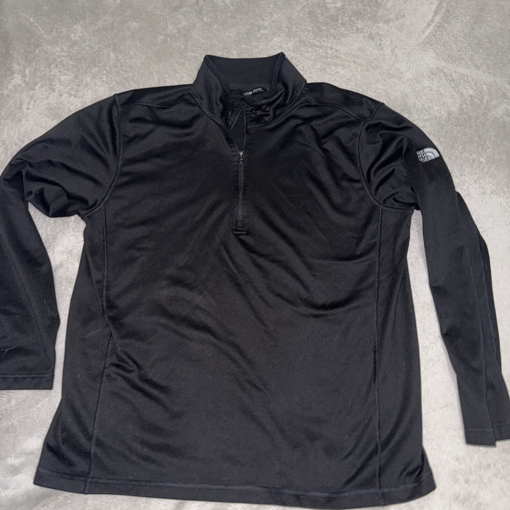 Small spot on the back. See pics. This black sweatshirt from The North Face is a must-have for any outdoor activity. With a solid pattern and embroidered logo accents, it features a collared neckline and long sleeves with a 1/4 zip closure. Made from soft fleece fabric, it is comfortable and machine washable for easy care. This sweatshirt is designed for men in size XL with a regular fit and is perfect for walking in the winter, fall, or spring seasons. It is a pullover style with no graphic print and is not vintage or personalized. Made in Nicaragua, this sweatshirt is ideal for any outdoor enthusiast who wants to stay warm and stylish.