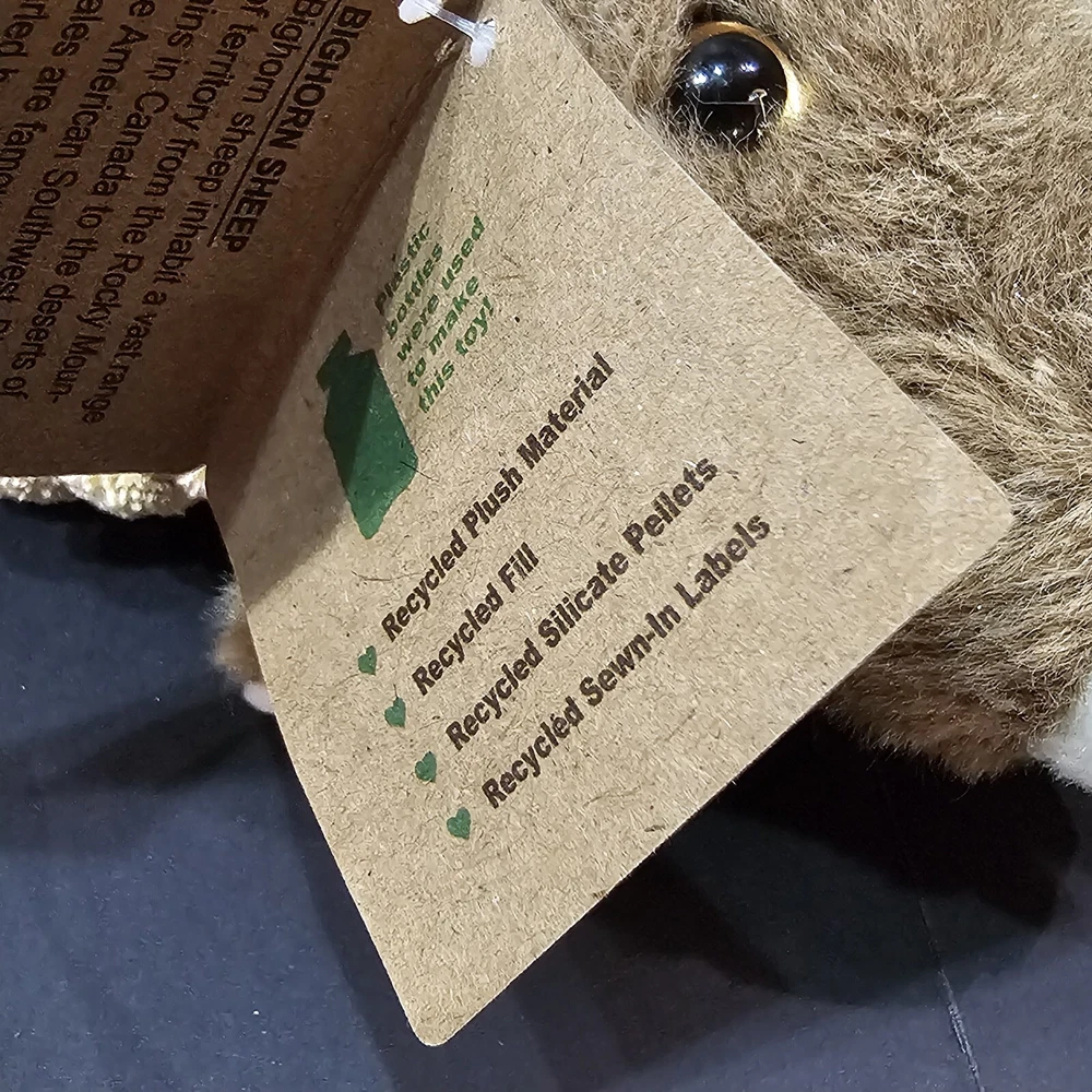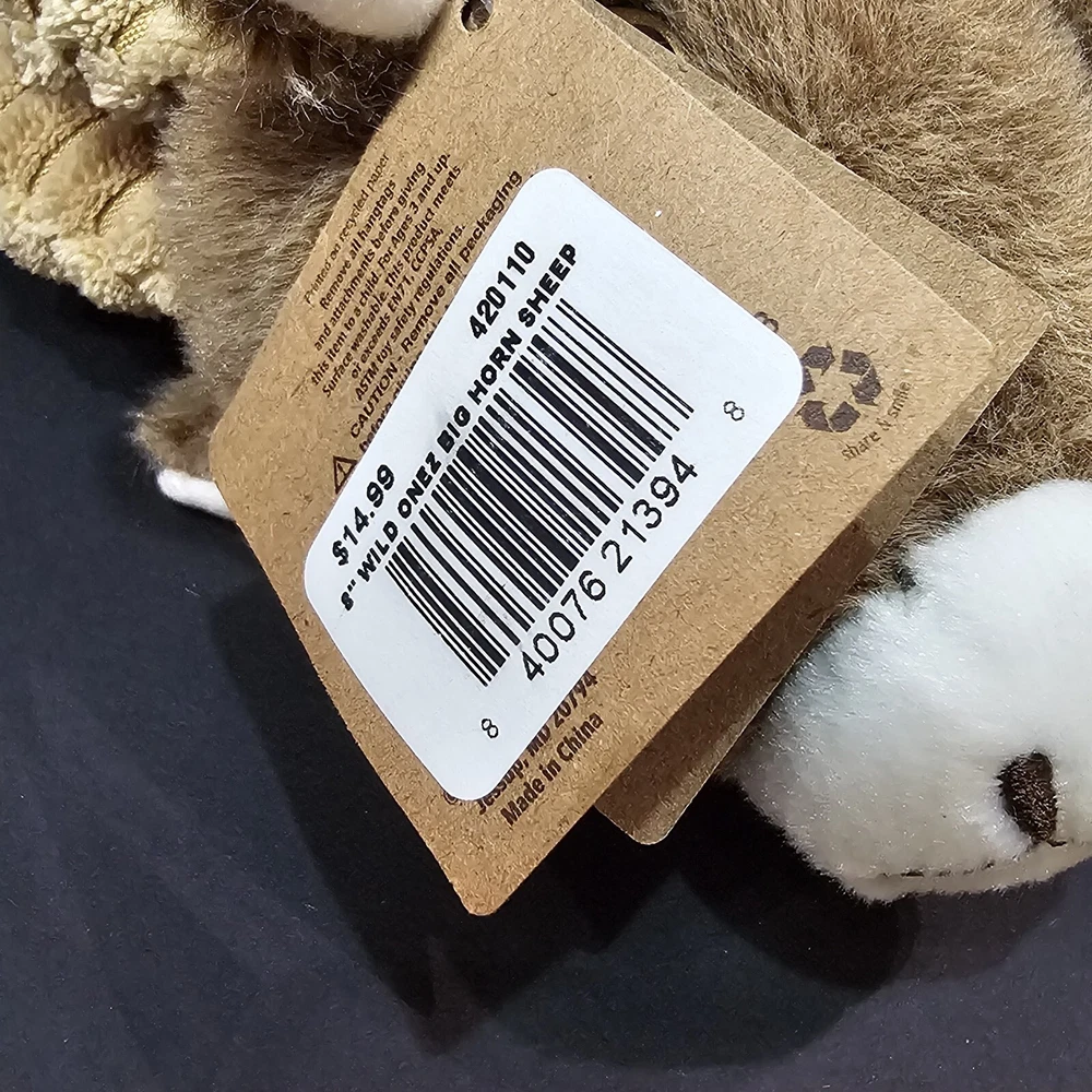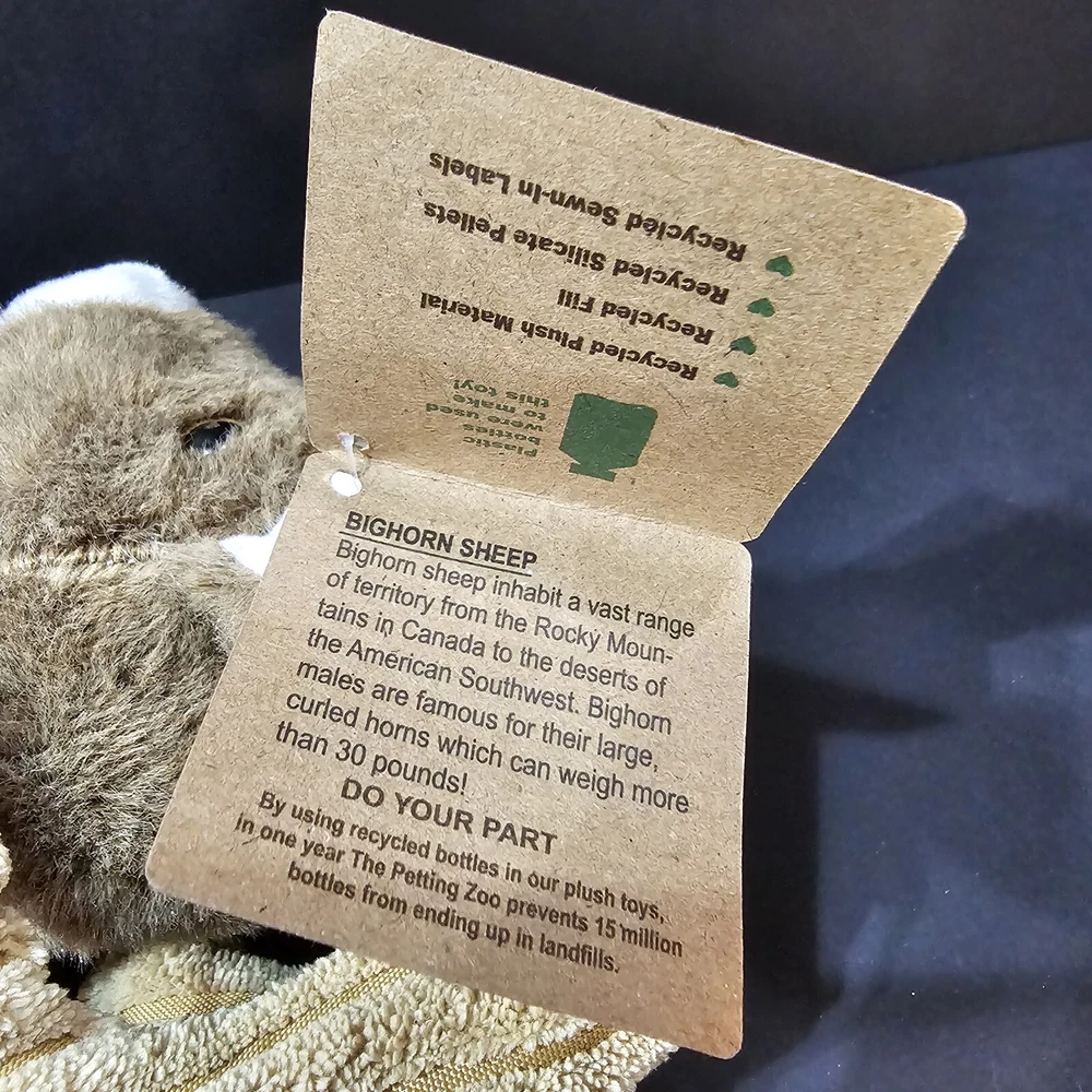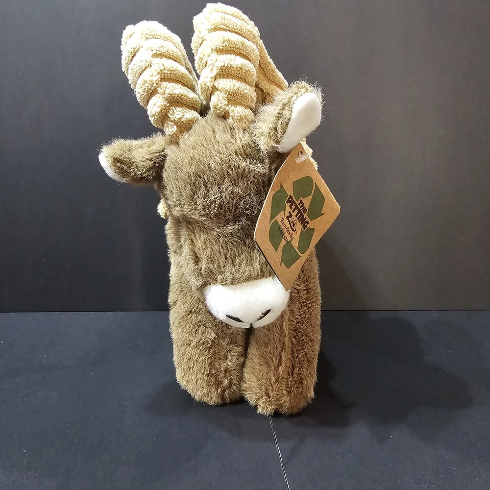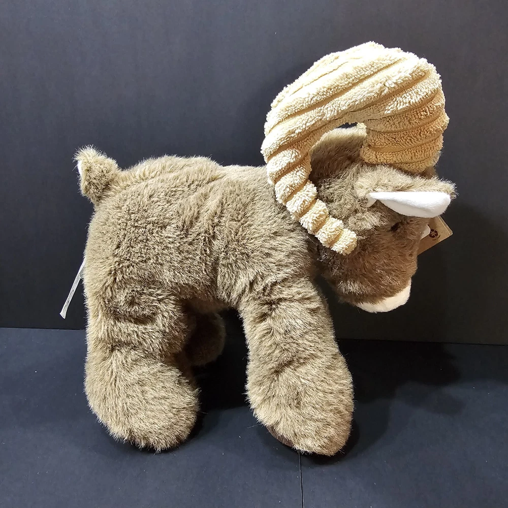 The Petting Zoo Big Horn Sheep Brown Wildlife Floppy Plush Stuffed Animal NWT 8 inches long from nose to tail 9 inches tall from top of horns