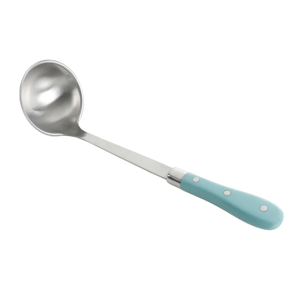 The Pioneer Woman Frontier Collection 15-Piece All in One Tool and Gadget Set, Turquoise Set will outfit your entire kitchen with all the essential staples and accessories to help make cooking a breeze. This set is available in Red, Teal, Linen, Black and Cobalt Blue so you can choose the perfect color to compliment your kitchen's color scheme. This 15 piece set is crafted with durable. The nylon head spatula is the perfect addition to the set. Made of Stainless Steel, Nylon and Riveted ABS Handles Dishwasher Safe All Purpose Spatula Balloon Whisk Basting Spoon Flat Whisk Cheese Grater Ice Cream Scoop Jumbo Turner Ladle Potato Masher Meat Tenderizer 14" Nylon Turner Pizza Cutter Slotted Spoon 13" Slotted Spatula Icing Spreader Brand The Pioneer Woman Assembled Product Weight 6.61 lb Manufacturer Part Number 122709.15R Manufacturer Gibson Overseas Inc. Color Blue Assembled Product Dimensions (L x W x H) 39.00 x 23.00 x 10.50 Inches