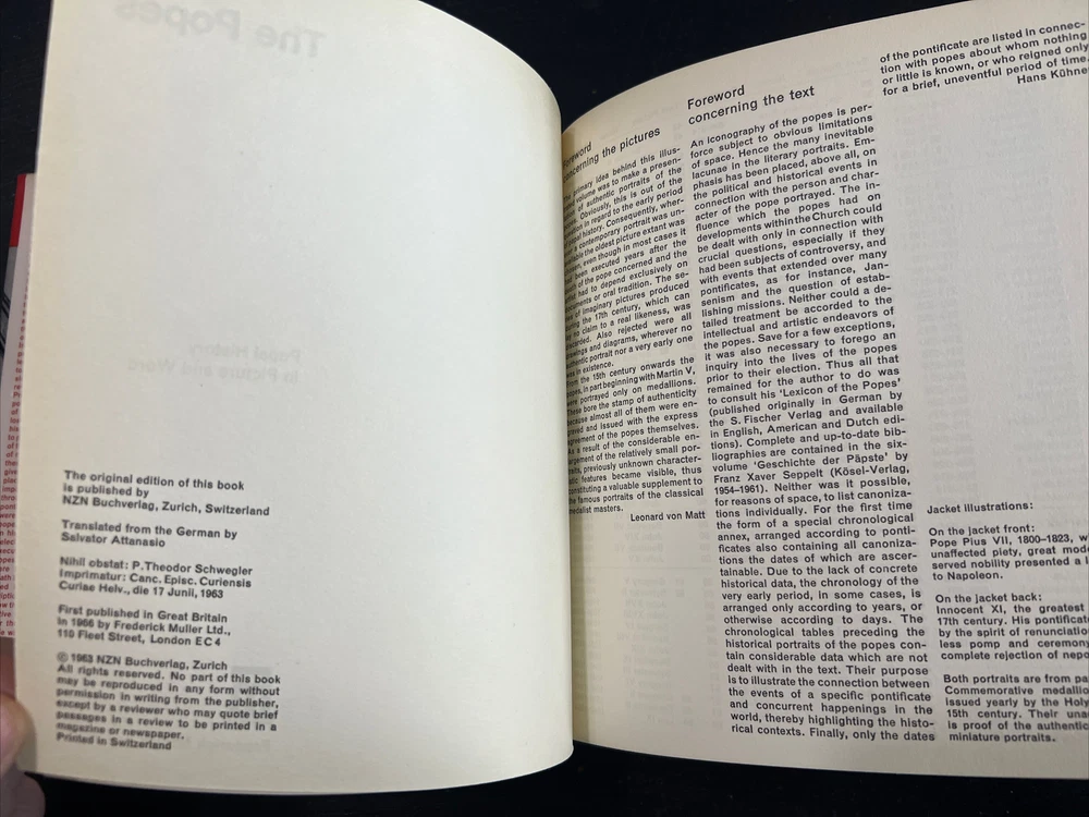 FINAL SALE ITEMS SOLD AS IS PLEASE CAREFULLY READ DESCRIBTION AND SEE CONDITION This rare hardcover book titled "The Popes Papal History In Picture And Word" is a valuable addition to any collection. Published in 1966 by Universe Books, Inc, it offers a glimpse into the rich history of the papacy in English language. The authors Leonard von Matt and Hans Kuhner. Please take a look at the other items in our store, the VH Store!!!