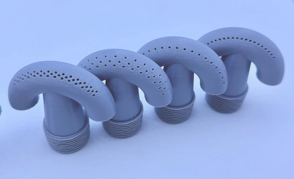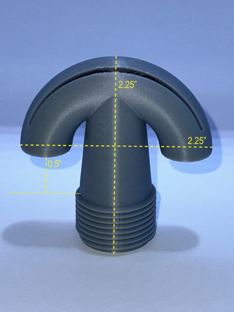 An Artista3D/Pools original product, our innovative Roundaerator (Patent Pending) Pool Aerator gives almost a 180 degree spread of water aeration to your pool. Cools your pool better than a traditional aerator while creating a fun fountain effect and soothing water feature. The Roundaerator is now highly customizable. Order yours with a single layer slit, multi-layer slit, single layer holes, multi-layer holes and with varying degrees of aeration - 120 degrees for more narrow pools and 170 degrees for wider pools. Please Note: 170 Degree - Multi-Layer Slit is only recommended for a higher horse power pump with high output and the ability to divert most water to the aerator, otherwise the aerator will not perform optimally. Also, the design of the Roundaerator puts it under high pressure due to water regulation, if you see a small amount of leakage out of the threads, this is perfectly normal due to the nature of the design. Don't hesitate to message us if you have questions. Made of ultra durable PETG plastic material, it is sure to be a hit at your pool parties. Compatible with systems from top brands like Intex, Bestway, and Hayward. Improved Water Quality: Aeration helps keep your pool water fresh and clean. Perfect replacement for Pentair 3/4 " Aerator Fitting Inlet Replacement Pool and Spa Fitting 86201500 Your satisfaction is guaranteed or your money back no questions asked and no need to return the product. Patent Pending Made in the USA!