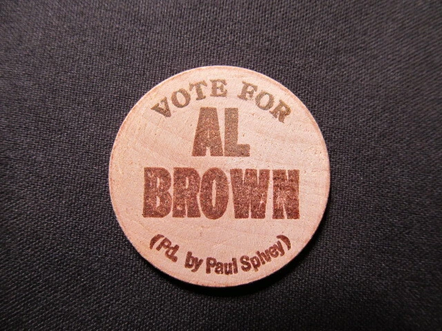 The State Of Texas Wooden Nickel Token - Vote For Al Brown Wooden Nickel Coin - TX Wood Token - See the photos for description and condition, and judge for yourself. I do combine shipping on all of my auctions. Please wait for my invoice if you win multiple auctions. Your purchase will be shipped safely in bubble wrap and padded envelope. Thanks for looking!