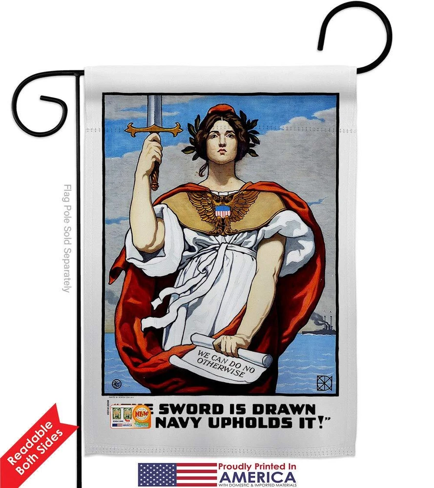 The Sword is Drawn Garden Flag 2pcs Pack Armed Forces Navy USN Seabee United ...
