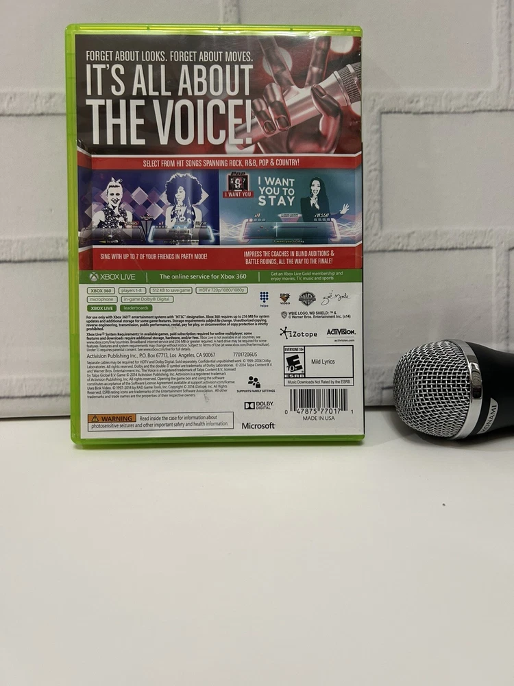 The product is "The Voice: I Want You" for Xbox 360, released in 2014 by Activision. It is a singing game based on the TV show "The Voice." The Xbox 360 case and disc are included, and the item ships quickly. Forget About Looks. Forget About Moves. It's All About The Voice!