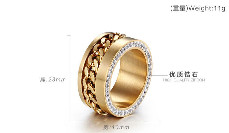 The titanium steel chain ring is studded with diamond stainless steel rings