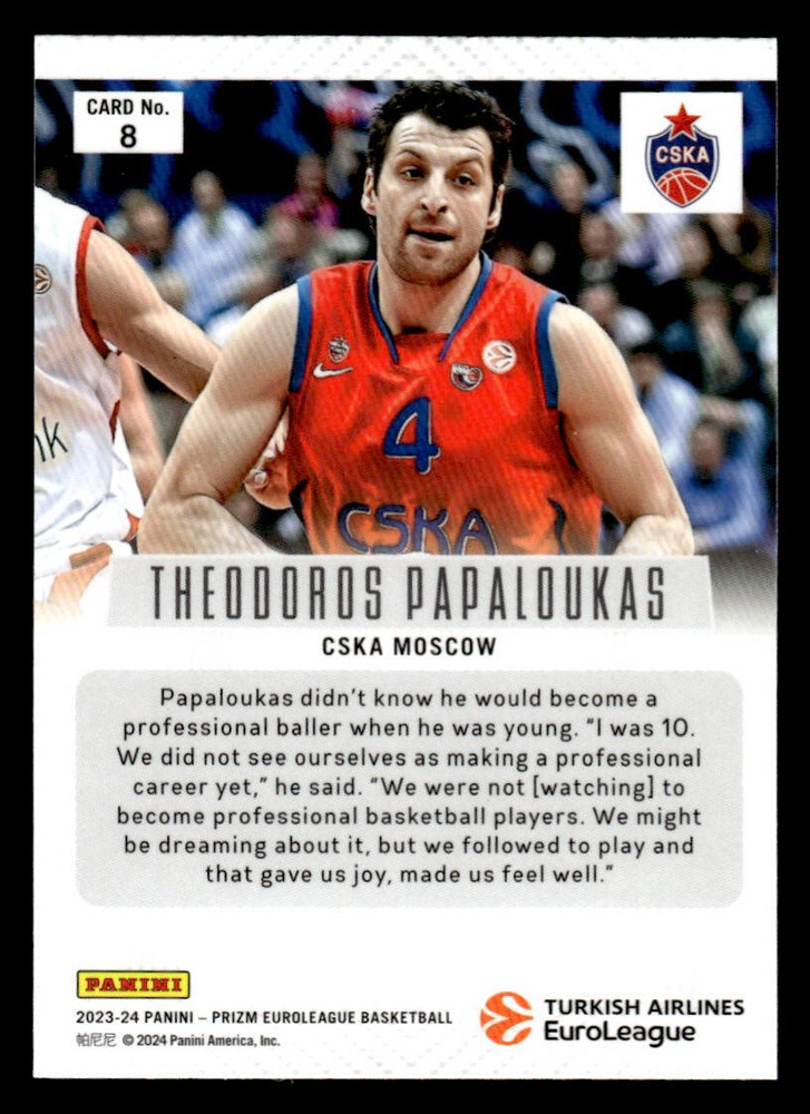 This Theodoros Papaloukas Prizm Retro card is a must-have for EuroLeague collectors! The vibrant colors and sharp design make it stand out, and getting the exact card pictured is a huge plus. Seller offers combined shipping and quick communication—great experience overall. Highly recommended!