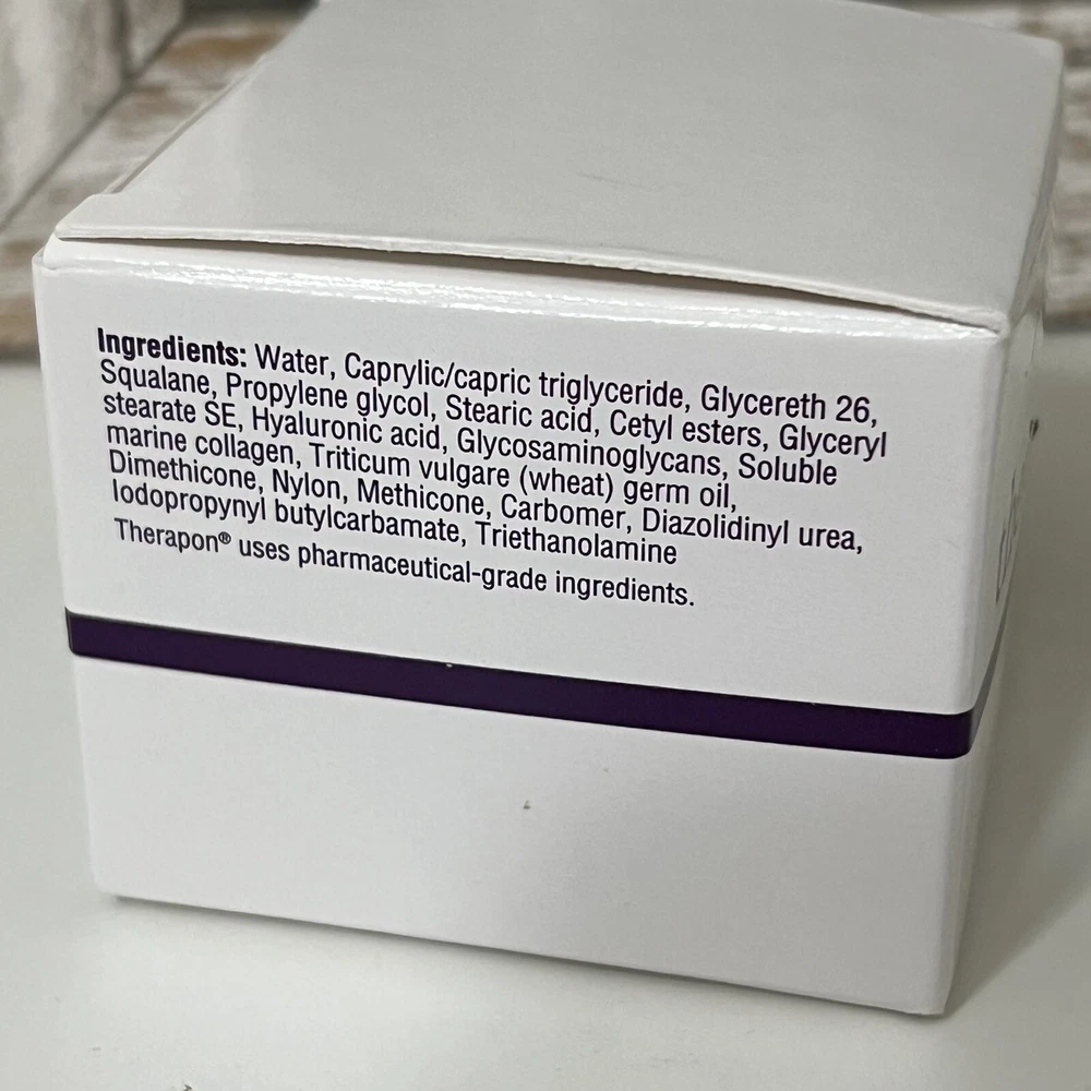 Theraderm Gentle Facial Moisturizer 2 Fl. Oz New NIB Clinical Skincare. All Ingredients: Water, Caprylic/Capric Triglyceride, Glycereth 26, Squalane, Propylene Glycol, Stearic Acid, Cetyl Esters, Glyceryl Stearate SE, Hyaluronic Acid, Glycosaminoglycans, Soluble Marine Collagen, Triticum Vulgare (Wheat) Germ Oil, Dimethicone, Nylon, Methicone, Carbomer, Diazolidinyl Urea, Iodopropynyl Butylcarbamate, Triethanolamine Beneficial Ingredients: Hyaluronic Acid Does Not Contain: Parabens Fragrance Dyes