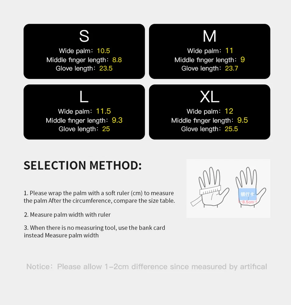 Product Description: 【Full Protection】Comfyhands thermal gloves are made with a skin-friendly waterproof outer layer and a soft, dense fleece lining, along with extended knitted cuffs, effectively preventing the intrusion of ice and snow, keeping your hands away from the cold. 【Touchscreen Operability Without Freezing Hands】The thumb and index finger touch the screen so you can manipulate it sensitively without taking off your gloves. This way, you don't have to take your gloves on and off every time you receive a call or need to operate your screen. 【Windproof an d Waterproof Featu res】Comfy hands thermal gloves utilize high-density nylon fabric, thanks to inner lining made of soft cotton, delivering exceptional windproofing, coupled with waterproof properties to prevent water leakage, ensures that you stay dry and warm. 【Warm and Breathable】Comfy hands thermal gloves are crafted from soft and comfortable materials, providing a snug fit. The specially designed anti-slip PU leather on the palms and fingertips enhances grip, increases wear resistance, and durability. 【Suitable for Many Occasions】Suitable for all kinds of outdoor winter activities, cycling, fishing, working, camping, hiking, walking, skiing, traveling, etc. A great gift for family and friends! Specifications: 1.Color: Black,Gray 2.Name: Winter Women Men Bicycle Gloves 3.Material: Silicone, conductive leather, waterproof fabric 4.Item Weight: About 90g 5.Size: M, L, XL 6.Suitable for: Cycling, Riding, Fishing, Hiking, Skiing, Running, Outdoor Sports Product Includes: 1 pair of touch screen gloves Notice: 1. Please allow 2-3% error due to manual measurement. 2. The colors may have different as the difference display, please understand. Contact US: Your satisfaction is our highest priority. Please contact us if you have any questions or requests about our products or service. We are always glad to assist you and stand by our products.