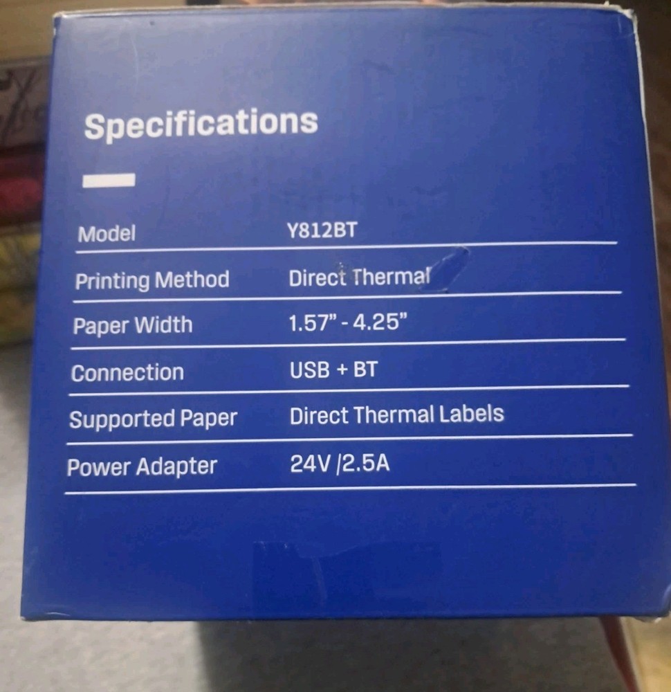 Effortlessly tackle all your labeling needs with the sleek and modern Thermal Label Printer 4x6 (Black) Y812BT. Its direct thermal technology ensures that your labels are produced quickly and efficiently without the need for ink or toner. Ideal for creating monochrome labels, this unit is perfect for organizing your home or office with crisp, clear black and white output. Seamlessly integrate this label printer into your tech-savvy lifestyle with its intuitive Bluetooth connectivity, allowing for easy wireless printing from your smartphone or tablet. Crafted with precision in China, this unit is designed as a standalone piece, ready to deliver top-notch performance for all your labeling requirements.
