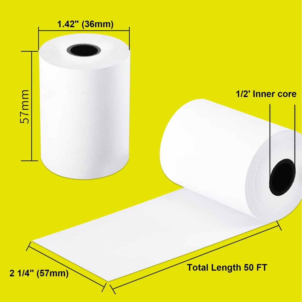 2 1/4" x 50' Thermal Paper Receipt Paper Compatible with Clover Flex Mobile POS Clover Mini, 100 Rolls Premium Quality White Thermal Paper is designed for clear, crisp, easy-to-read sales receipts. The 2 1/4" x 50' thermal credit card paper roll is the most common size that fits all credit card terminal. Paper Size: 2-1/4" (W) x 36mm 1.4"(D) x 50ft(L) 5 rolls per pack, 20 packs per carton, total 100 rolls Each paper roll has an red end of warning signal Paper weight: 48g, Brightness: 55lm 1/2" Inner diameter core