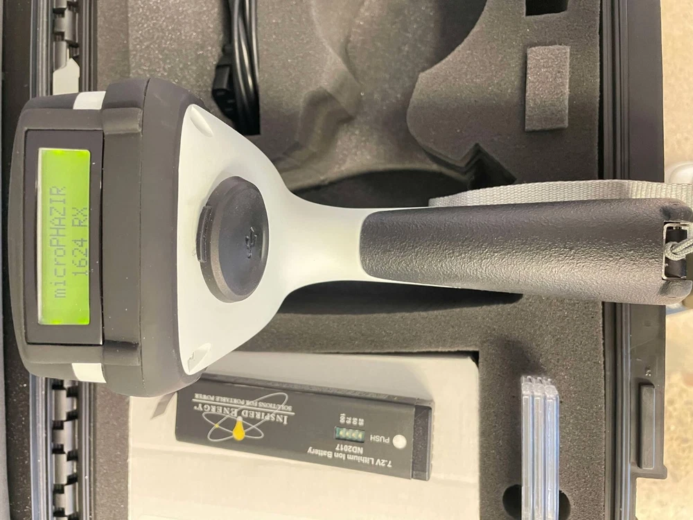 Thermo Fisher MicroPHAZIR 1624 RX This Thermo Fisher Scientific Microphazir RX Analyzer is in great condition and comes with multiple accessories and the factory case. Included with this unit are a power supply cord, reference standard, operating software, battery, charger, tool kit, and a sturdy factory case. See photos for all items and condition. Unit powers on and screen is fully operational. Great condition. Comes with spare battery. May need calibration.